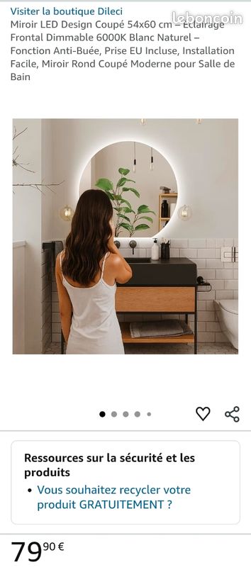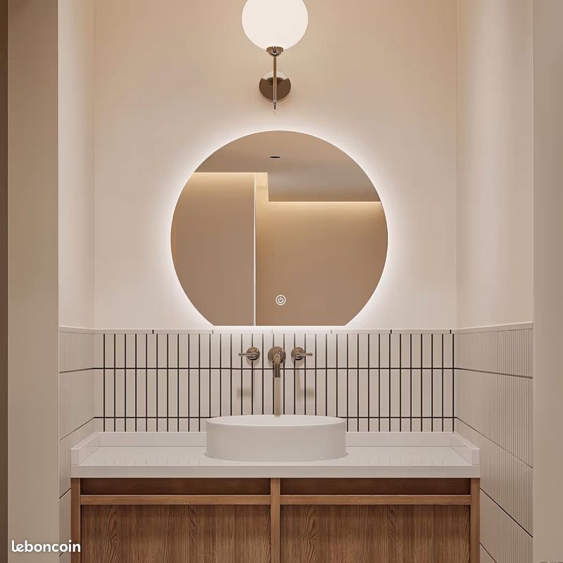 💬 Un miroir qui allie minimalisme, modernité et confort d’utilisation, signé Dileci. Miroir Design Coupé 54x60 Cm Miroir LED Design Coupé 54x60 Cm – Éclairage Frontal Dimmable Miroir LED Frontal 6000K L’éclairage LED frontal diffuse une lumière blanche naturelle (6000K), idéale pour illuminer le visage avec précision sans créer d’ombres. FORMAT COMPACT 54x60 CM – Idéal pour les petites salles de bain, WC ou meubles vasques, offrant design et fonctionnalité dans un format pratique. FONCTION DIMMABLE & ANTI-BUÉE – Réglez l’intensité lumineuse selon vos envies et profitez d’un miroir toujours net, même après la douche. DESIGN ORIGINAL COUPÉ EN BAS – Forme circulaire interrompue pour un rendu graphique et contemporain, parfait pour un intérieur moderne. Vous profitez ainsi d’un confort optimal au quotidien. Léger, bien protégé et prêt à poser pour un usage immédiat. Alliant design innovant, confort lumineux et praticité, ce miroir Dileci est la solution parfaite pour donner du caractère à votre espace tout en facilitant votre routine quotidienne. Grâce à la fonction dimmable, ajustez facilement la luminosité selon vos besoins : éclat maximal pour le matin, lumière douce pour une ambiance relaxante. Léger, robuste et soigneusement emballé, il arrive chez vous en parfait état, prêt à sublimer votre intérieur. AICA LED 60cm miroir fonctionnel 6000k blanc luminosité réglable avec 80x60cm Miroir LED de salle de bain rectangle vertical anti-buée avec... Pensé pour être simple à installer et prêt à l’emploi, il est livré avec prise EU, vis et chevilles pour un montage rapide et sécurisé.