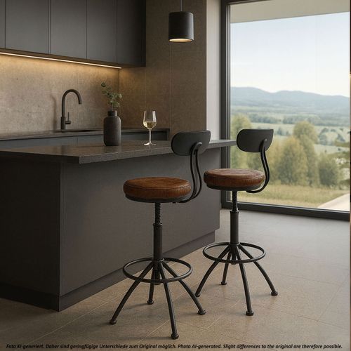 Repose-pieds inclus|Avec protection pour le sol Lot 2 Tabourets Bar Lot De 2 Tabourets De Bar Réglable Décor Bois Courbé Et Simili Cuir Noyer Et Noir Design Industriel Similicuir Marron Noir Contenu de la livraison : 2 tabourets de bar|Design industriel moderne Dont 1., 2€ d'éco-part inclus- Contenu de la livraison : 2 tabourets de bar- Design industriel moderne- Réglable en hauteur en continu grâce à un mécanisme rotatif- Rotation à 360°- Repose-pieds inclus- Avec protection pour le sol- Châssis stable- Capacité de charge maximale par chaise : 150 kg- Cet ensemble de 2 tabourets de bar au design industriel élégant offre une rotation à 360° et un réglage en hauteur en continu pour un confort optimal. ) : Total : 79-101 x 45 x 45 cm Hauteur d'assise : 51-73 cm Largeur d'assise : 35 cm Profondeur d'assise : 35 cm Hauteur du dossier (mesurée à partir de l'assise) : 30 cm Matériau : Structure : métal Revêtement : similicuir (100 % polyuréthane) Rembourrage : mousse (100 % polyuréthane) Ce lot de 2 tabourets de bar O84 allie un design industriel moderne à une grande fonctionnalité et crée une ambiance élégante dans la cuisine, le bar ou la salle à manger. Tabouret de bar en bois pivotant réglable en hauteur chez KSL LIVING Grâce au mécanisme pivotant réglable en hauteur en continu, les tabourets de bar s'adaptent de manière flexible à différentes hauteurs de table, et la fonction pivotante à 360° offre une liberté de mouvement maximale. Tabourets de Bar en Similicuir - Lot de 2 - Style Simple - Pivants et Réglables - Maison Pour une protection supplémentaire de votre sol, les tabourets sont équipés de patins pratiques qui Chaque tabouret de bar peut supporter jusqu'à 150 kg et est équipé d'un repose-pieds.