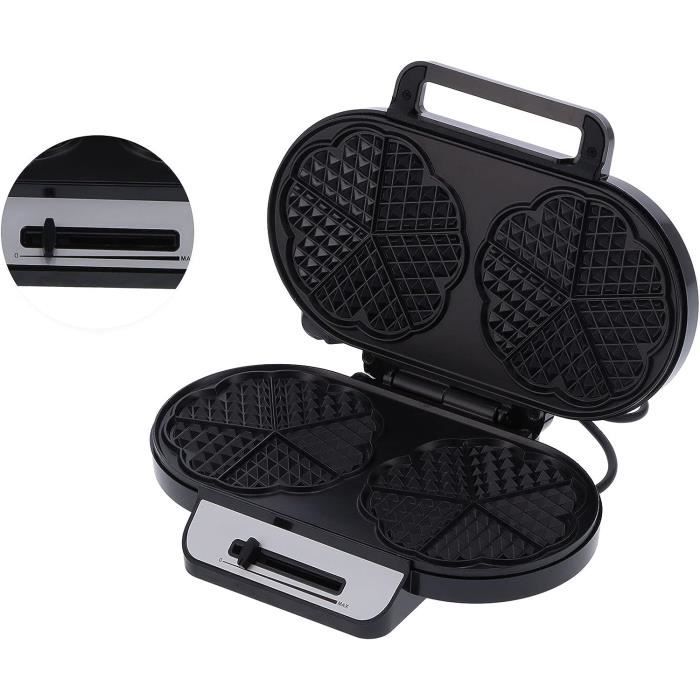 Seul le témoin rouge indique que l'appareil est prêt à fonctionner, ce qui permet de surveiller facilement la progression de la cuisson. Revêtement antiadhésif: un revêtement spécial empêche la pâte d'adhérer, ce qui permet de garder l'appareil propre et de retirer facilement les gaufres une fois cuites. Appareil Croque Monsieur Gaufrier Belge Gaufrier Belge Gaufrier Belge Gaufrier Avec Plaques Antiadhésives, Plateau D Poelon Raclette Tefal FOHERE Gaufrier Belge 1200W, Contrôle de Température à 5 Vitesses Réglage de la température : un bouton rotatif pratique vous permet de régler la température en fonction du type de pâte et de vos préférences de cuisson. Un design élégant : le design moderne et sobre de ce gaufrier noir et argenté s'intègre dans toutes les cuisines, leur conférant style et élégance et en faisant un objet de décoration attrayant. Vous avez ainsi un contrôle total sur le processus de cuisson et pouvez préparer des gaufres selon vos goûts. Cela augmente votre confort et rend le gaufrier également sûr pour les enfants. Tbest moule à gaufres Gaufrier belge à 4 tranches - plaques... Le nettoyage après la cuisson est donc rapide et facile. Vous rêvez de gaufres dorées et croustillantes, comme celles que l'on sert dans les meilleurs cafés ? Avec un gaufrier d'une puissance maximale de 1200 W, elles sont vite préparées, cuites uniformément et parfaitement croustillantes ! Plaques chauffantes haute puissance de 1200 W : avec une puissance maximale de 1200 W, le gaufrier offre un chauffage rapide et une répartition uniforme de la température pour garantir des gaufres parfaitement cuites et croustillantes qui raviront toute la famille et seront parfaites pour toutes les occasions.