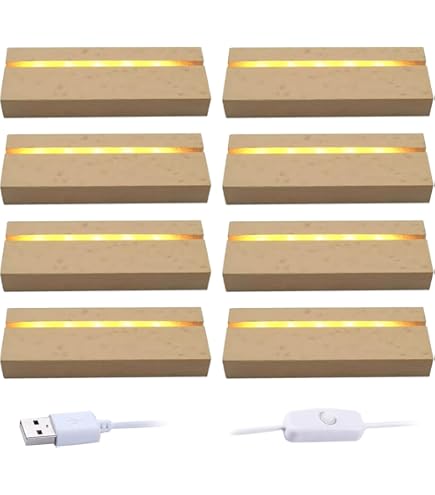 Socle Lumineux Led Pour Cristal 4 Pièces Socle Lumineux LED, Base D'affichage LED En Bois, Socle Lumineux LED Avec USB, Bases De Présentation Colorée Pour Acrylique, Cristal, Verre, Résine Pied De Lampe Vous pouvez être sûr que ce socle lumineux LED vous apportera de nombreuses années de plaisir PANNEAU PUBLICITAIRE LED OU PANNEAU PUBLICITAIRE LCD Ce lot de 4 socles LED en bois de la marque BAIFULAI est fabriqué à partir de matériaux de haute qualité, respectueux de l'environnement. Avec sa base en bois élégante et ses couleurs chaudes, il apporte chaleur et luminosité à votre espace de vie, créant une atmosphère agréable et accueillante - Cadeau parfait : la base en bois LED est un cadeau idéal pour les membres de la famille, les amis ou toute personne qui veut créer une atmosphère confortable à la maison. Cette base LED est également très adaptée pour les mariages, les fêtes ou d'autres occasions spéciales comme points forts décoratifs Socle Bois Led Acrylique Lot De 4 Socles Lumineux LED Munloo - Base Bois Pour Présentation Cristal, Résine, Bijoux Socle Exposition Acrylique Facile à utiliser : le socle LED dispose d'un câble d'alimentation USB avec interrupteur qui permet d'allumer et d'éteindre facilement la lumière sans avoir à brancher et débrancher le cordon d'alimentation, facile à utiliser. Spécifications: Nom du produit : base LED, base en bois Matériau : bois., Couleur : voir photo. Longueur du câble d'alimentation : environ environ 150 cm., Puissance : 3 W., Alimentation : USB., Tension : USB 5 V. Caractéristiques : Lumière chaude et vive : cette base rectangulaire en bois à LED affiche des couleurs chaudes de lumière et apporte de la chaleur et de la luminosité à votre salon ou chambre à coucher, assez pour égayer votre travail et créer un effet 3D vif pour une pièce calme et isolée. Couleur de lumière : blanc chaud. En outre, d'autres cubes et objets rectangulaires de n'importe quelle taille peuvent également être placés sur le socle lumineux Matériaux de haute qualité : socle LED fabriqué à partir de matériaux respectueux de l'environnement La base en bois est plus élégante, avec une finition fine, un aspect simple et élégant, la livraison comprend 4 plaques acryliques rondes de 5 mm avec des bords lisses Dimensions (L x l x H) : 150 x 45 x 30 mm, largeur de la fente : 5,2 mm.