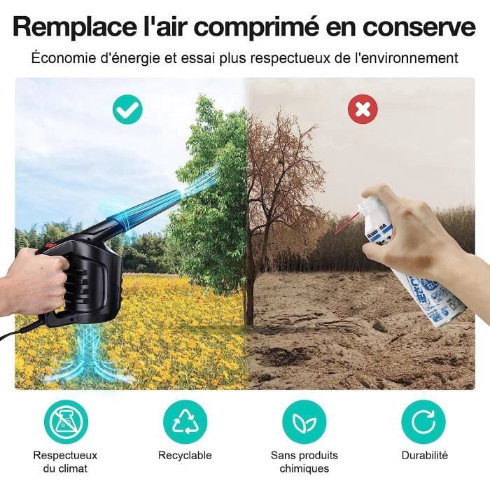 Nettoyage électronique Air Pulsé Souffleur Air Comprimé 3 Vitesses Souffleur PC - 6000 MAh Batterie Nettoyage électronique Clavier Objectif Souffleur d'air comprimé pour nettoyage machines Vente en ligne Souffleur D'Air Noir, Nettoyeur De Poussière, Souffleur D'Objectif... Ce dépoussiéreur à air sans fil est l'alternative écologique aux bombes d'air comprimé, doté d'une batterie rechargeable et de réglages de puissance réglables pour un nettoyage efficace n'importe où., 11 Souffleur D'Air Noir, Nettoyeur De Poussière, Souffleur D'Objectif
