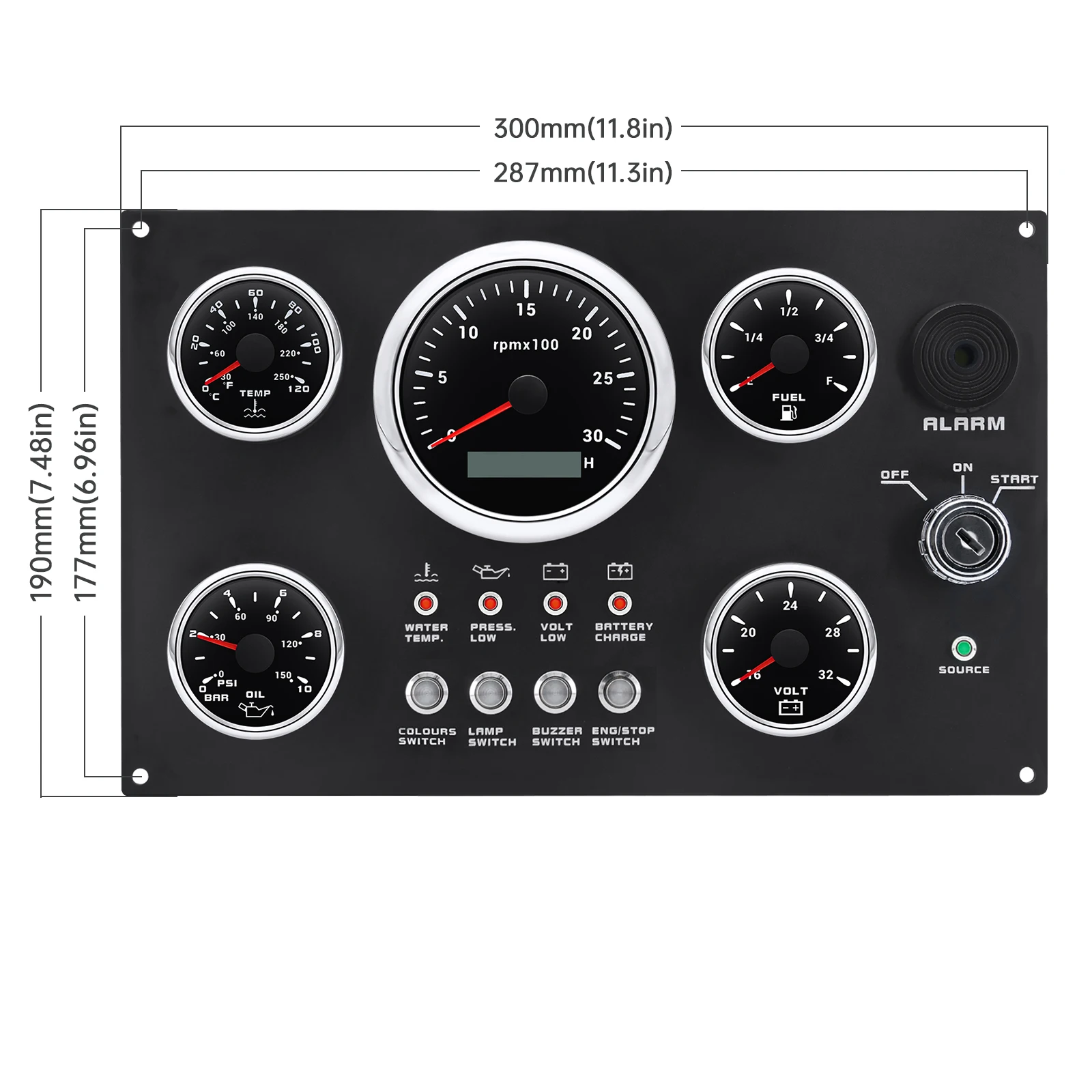 ON OFF, alarme de basse pression d'huile, alarme de température de l'eau, bouton de rétroéclairage et bouton de préchauffage, etc., Courant de fonctionnement : ≤100 [Performance supérieure] : Doté d'un moteur pas à pas, ce tableau de bord de bateau pilote le pointeur avec une grande précision, répétabilité et polyvalence, offrant un affichage fiable et stable, facile à lire et à utiliser. Ecran LCD pour tableau de bord multifonction Citroën C4 Picasso Diesel Panneau de commutation universel pour voiture voltmètre 12V double USB... [Matériau de qualité supérieure] : le tableau de bord du bateau est fabriqué en acier inoxydable 316l, en verre incurvé antibuée et en composants électroniques de qualité industrielle, garantissant une durabilité contre les chocs mécaniques et les vibrations sans rouille ni rouille. Eau, Électricité,Tableaux de commande et de contrôle pour bateaux - Tous les fabricants du nautisme et du maritime de la catégorie [Économiseur d'espace] : conçu pour une installation dans des camping-cars ou des véhicules de construction, la taille compacte de ce panneau de 210 x 160 mm permet d'économiser de l'espace tout en offrant une large plage de tension de fonctionnement de 9 à 32 V et une consommation d'énergie ultra faible pour un fonctionnement efficace. [Performance supérieure] : doté d'un moteur pas à pas, ce tableau de bord de bateau pilote le pointeur avec une grande précision, répétabilité et polyvalence, offrant un affichage fiable et stable, facile à lire et à utiliser. Tableau De Bord De Bateau Tableau De Bord Multifonction Pour Bateau, 4000 Tr /min, Rétro-éclairé Rouge, Panneau De Commutation RV Avec Fonction D'alarme Pour Bateau Marin Et Yacht (12V Tableau De Bord Jauge [Étanche IP67] : avec un indice d'étanchéité IP67 et anti-poussière. [Matériau de qualité supérieure] : Le tableau de bord du bateau est fabriqué en acier inoxydable 316l, en verre incurvé antibuée et en composants électroniques de qualité industrielle, garantissant une durabilité contre les chocs mécaniques et les vibrations sans rouille ou. [Espace Saver] : Conçu pour une installation dans des véhicules récréatifs ou des véhicules de construction, la taille compacte de ce panneau de 210 x 160 mm permet d'économiser de l'espace tout en offrant une large plage de tension de fonctionnement de 9 à 32 V et une consommation d'énergie ultra faible pour un fonctionnement efficace.