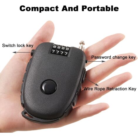 【Matériaux de haute qualité】 Le câble antivol est fabriqué à partir de plastique ABS et de fil d'acier de haute qualité, des matériaux écologiques, solides et durables. 【Sécurité】 Molette de mot de passe fluide, il suffit de définir une combinaison de 3 chiffres, vous pouvez modifier le mot de passe à votre guise, définir un mot de passe sûr et indépendant. MB-HL019- BK Antivol de casque de moto avec mot de passe à combinaison à 3 chiffres et 【Contenu de l'emballage】Vous recevrez 1 câble antivol en acier noir, le produit mesure 7 cm de long et 5,5 cm de large ; le câble métallique mesure environ 70 cm de long et 1,6 mm de diamètre. Fil d'acier haute résistance, difficile à couper, la longueur peut être rétractée et ajustée grâce à la boucle pour répondre à une variété d'exigences. Antivol portable pour casque de moto, antivol à combinaison pour vélo, 4 150 cm, pour motos, vélos de route de montagne | Leroy Merlin Grâce à sa petite taille et à son poids léger, il se glisse facilement dans votre poche et vous pouvez l'emporter partout avec vous. Caractéristiques : Le corps du cadenas est fabriqué en plastique ABS haute résistance, durable, léger, facile à transporter et agréable au toucher. Câble Rétractable 70cm Acier Dinohhi Cadenas Antivol Pour Casque Avec Combinaison à 3 Chiffres Câble De 90 Cm (rouge Cadenas Ski