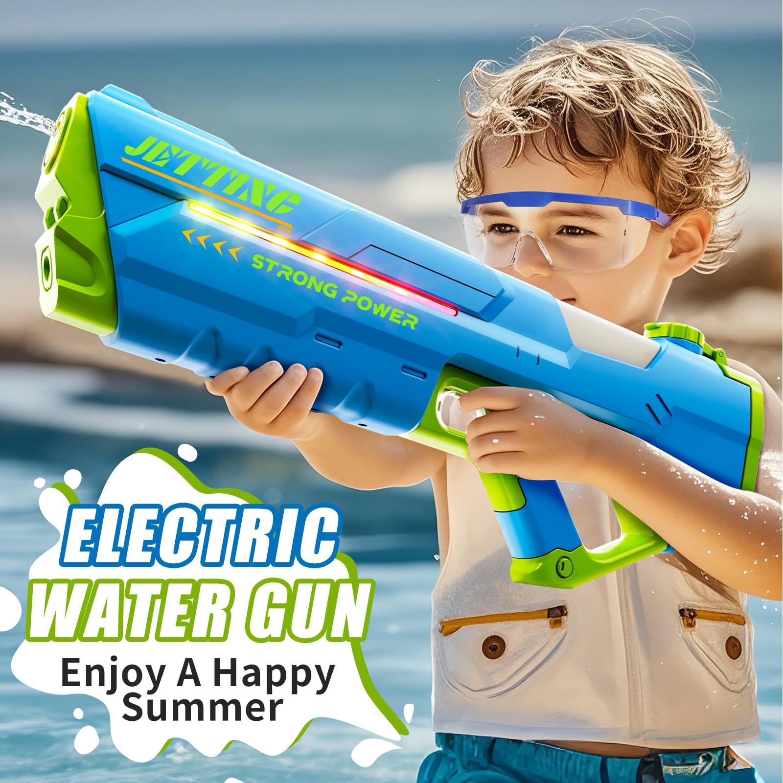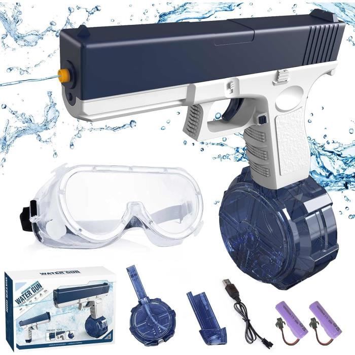 Et si l'eau s'épuisait pendant le jeu ? Ne vous inquiétez pas ! Le pistolet à eau électrique puissant a une portée de jusqu'à 32 pieds (environ 9,75 mètres). Pistolet Lumineux Fête Piscine JONNRYIN 2 Pack Pistolet A Eau Electrique Pour Enfants Adultes, Pistolet à Eau Automatique Mitraillette A Bille Pistolet à eau électrique pour adultes et enfants, pistolet à eau électrique, pistolet à eau Vous pouvez rapidement remplacer la bouteille d'eau de rechange (n'importe quelle bouteille standard de soda) pour étendre la capacité du réservoir et obtenir un avantage dans la bataille d'eau, apportant plus de plaisir aux jeux de bataille en plein air ! Idéal pour les réunions familiales, les fêtes de piscine ou les jeux d'équipe – un cadeau parfait pour les anniversaires, les vacances ou l'été ! Il vient avec des lunettes de protection pour protéger les yeux dans toutes les directions ! Ce pistolet à eau électrique est parfait pour les enfants et les adultes. Water Gun – Pistolet à eau électrique – Waterguns Avec ce pistolet à eau électrique puissant, vous pouvez atteindre la cible de loin, vous assurant de dominer la bataille d'eau et de gagner ! En plus de l'absorption automatique, vous pouvez ouvrir le couvercle et ajouter manuellement de l'eau dans l'ouverture de remplissage – très pratique ! 【Lumières LED Étonnantes】Le canon du pistolet est décoré de bandes de lumières LED colorées vives des deux côtés, qui coulent dans des directions différentes lors du tir ou de l'absorption d'eau.