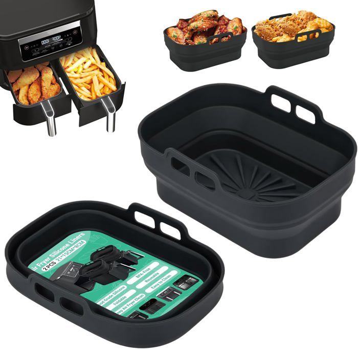 Fini les plaques de cuisson qui glissent et les en-cas brûlés ! Cette conception garantit une cuisson sûre et évite les risques d'incendie. Compatible avec les Airfryer Ninja SL300EU, SL400EU, AF500EU, AF400EU et SL451EU. 【Utilisation Polyvalente】Accessoire de fixation pour papier sulfurisé pour friteuse à air, polyvalent ! Parfaits pour les familles soucieuses de leur santé qui apprécient les matériaux de haute qualité sans plastique ! Quelle que soit la taille de votre friteuse à air, ces attaches magnétiques en silicone s'adapteront à vos besoins et amélioreront votre expérience culinaire. 【Facile à Utiliser】Rincez simplement après utilisation pour un nettoyage impeccable. Entretien simple et rapide, pour un quotidien plus agréable en cuisine. Accessoires de moule pour friteuse à air 3 pièces, panier de friteuse à Papier Cuisson Air Fryer, 100 Pièces Papier Sulfurisé Air Fryer 20CM Papier pour Friteuse à Air... 【Magnétisme Puissant pour un Maintien Parfait et Sécurisé】De puissants aimants intégrés adhèrent fermement au panier de la friteuse, garantissant ainsi la bonne tenue du papier sulfurisé. Ces accessoires sont compatibles avec les friteuses à air chaud Ninja, COSORI et PHLIPS Panasonic. Accessoires Airfryer 100 Feuilles Papier Parchemin Pour Friteuse à Air, Parchemin Carré Cuisine Antiadhésive, Papier Clip Silicone Résistant Chaleur 【Matériau en Silicone Résistant aux Hautes Températures】Ces trombones magnétiques pour friteuse à air sont fabriqués en silicone de qualité alimentaire et résistent facilement aux températures les plus élevées. Compatible avec les Air Fryer Cosori Turbo Tower Pro et Smart CAF-DC601-KEU et CAF-DC112-ADE, Cosori Double Stack CAF-R901-AEU, TF101S 8,5 L et 10 L. Cela empêche efficacement le papier sulfurisé jetable de recouvrir les aliments ou d'entrer en contact avec l'élément chauffant, ce qui pourrait les brûler. Particulièrement pratique pour les petites portions (par exemple, les goûters des enfants) ou un panier plein : même retiré brusquement, le papier sulfurisé reste en place.