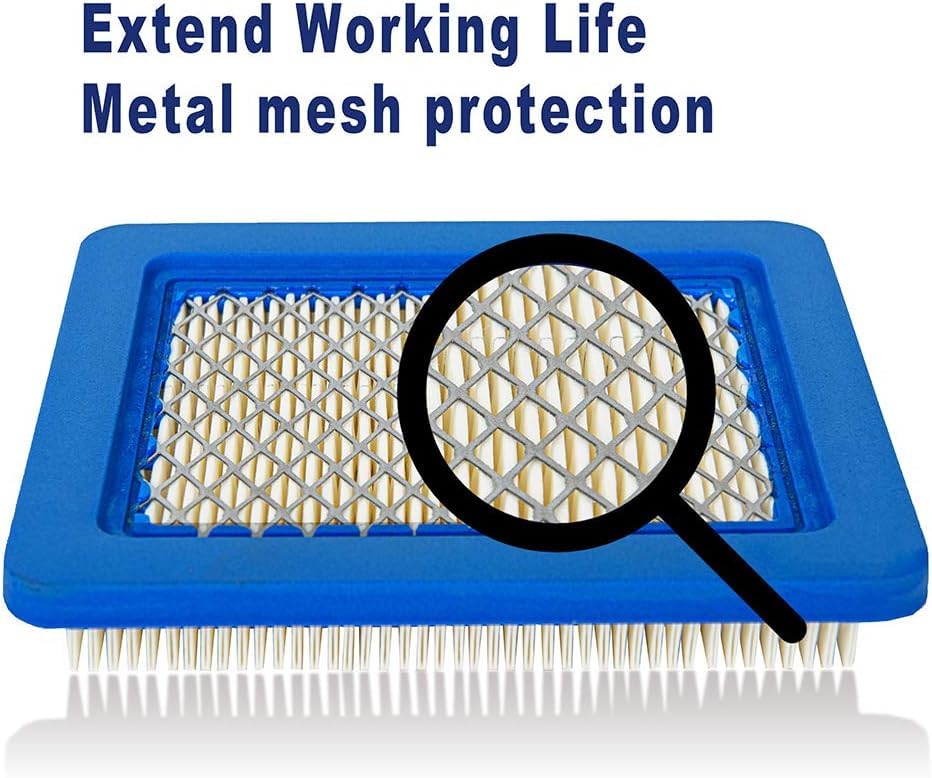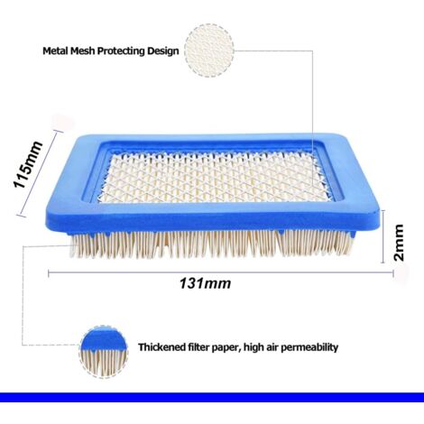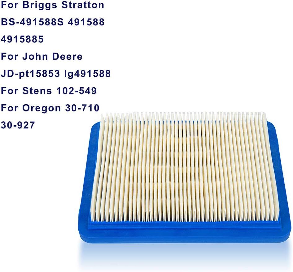 Compatibilité du produit : Cartouche plate de filtre à air pour BS 93400, 129H00, 12A800 (0100, 0413, 0414, 0508, 0511, 0512, 0513, 0514, 0600, 0611, 061 moteur), 12B800, 12C700, 12C800, 12D800, 90700, 91700, 9A400, 9K400 série moteur. La conception des joints en polyuréthane avec des joints souples et moins de caoutchouc améliore les performances d'étanchéité et réduit les vibrations et le bruit. Filtre à air pour moteur Briggs & Stratton 491588, 491588S par 2 Filtre à air pour moteur Briggs & Stratton Application du produit : Filtre à air pour quantum 3., 5-6., 5 HP petit moteur, pour élément série 625 675 725 625-675 e/ex, pour petit moteur 124T00 126T00 126M02 124L02 124L05 124L07 124T02, la plupart des moteurs modèle 124000, pour tracteur tondeuse à pousser, pour tracteur tondeuse à l'arrière, etc Hot Sale Kabinen filter 36046 74006 36634 Rasenmäher Filter element Joint en polyuréthane hautement élastique : Le filtre à air adopte une conception de joint en polyuréthane, un joint souple, moins de bavures de caoutchouc, un ajustement sans couture, ce qui peut améliorer les performances d'étanchéité, réduire les vibrations et le bruit, et une conception de tamis solidement renforcé en métal, qui conserve mieux la forme et prolonge la durée de vie. 2 x Bougie d'allumage Kit Entretien Moteur Tondeuse Troy-Bilt Toro Filtre à Air Pour Briggs & Stratton 491588 399959 491588S Filtre Quantum 3.5-6.5 HP Taille du filtre à air : L x L x H : 5-1/4in x 4-1/2in x 13/16in, 133mm x 114., 3mm x 20., 6mm Produits inclus : 2 x Filtre à air 2 x Bougie d'allumage Numéro de pièce de remplacement : 491588 491588B 399959 5043K 20332 33644 30-710 491435S 4915885 4915886 4915888 4915889, 4101 5043 5043A 5043D 5043H 5043K Compatibilité du produit : Filtre à air pour BS 93400, 129H00, 12A800(0100, 0413, 0414, 0508, 0511, 0512, 0513, 0514, 0600, 0611, 061 moteur), 12B800, 12C700, 12C800, 12D800, 90700, 91700, 9A400, 9K400 série moteur. Filtre à air pour tondeuse Troy-Bilt TB110 Filtre à air pour John-D-Eere Pt15853 Lg491588 Filtre à air pour Stens 102-549 Filtre à air pour Oregon 30-710 30-927 Filtre à air pour Rotary 2838 Filtre à air pour Toro 20332 20334 20330 Filtre à air pour Ariens 21529800 Filtre à air pour Craftsman Filtre à air pour Honda Filtre à air pour petit moteur quantum 3., 5-6., 5 HP Filtre à air pour 625 675 725 625-675 e/ex series element Filtre à air pour tondeuse à gazon poussée Tracteur Filtre à air pour tracteur-tondeuse à conducteur marchant, etc.