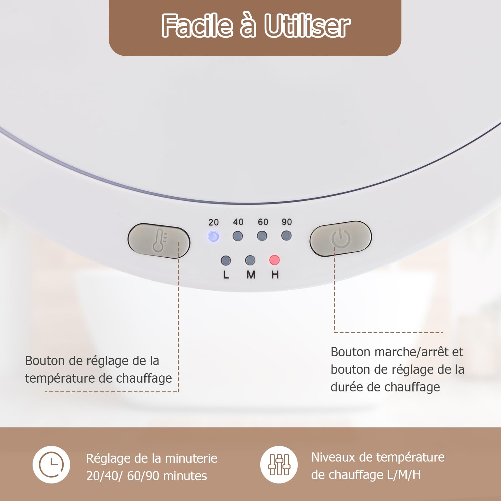Radiateur Sèche-Serviettes Électrique 6 Barres, Sèche-Serviettes Mural... Le couvercle amovible avec poignée facilite la personnalisation de chaque séance d’aromathérapie. Chauffe Serviette - RELAX4LIFE - 23L - Température 125℃ - Couvercle Chauffe Serviettes électrique 20L RELAX4LIFE Seau Chauffe-Serviette 20L Avec Température Réglable à 3 Chauffe-serviettes électrique Commande simple par un bouton unique : Un simple bouton tactile (bouton marche/arrêt) lance le chauffage. Cadeau de haute qualité : Le chauffe-serviettes style seau se distingue par un design élégant avec écran LED clair et base ronde antidérapante. Sa conception de qualité supérieure et son aspect luxueux en font un cadeau parfait pour vos proches à l’occasion d’un déménagement, mariage, anniversaire, etc., ; Parfum personnalisé : Vous pouvez ajouter votre disque parfumé préféré dans le compartiment sous le couvercle. Description du produit : Enveloppez-vous de chaleur grâce à notre chauffe-serviettes chauffant de luxe ! (Note : disque parfumé non inclus) Caractéristiques principales : Seau spacieux pour chauffe-serviettes offrant une grande capacité de 20L pour toute la famille Peut contenir de grandes serviettes, couvertures douillettes, peignoirs en peluche et même des pyjamas Atteint rapidement la température maximale de 130℃ en seulement 6 minutes Bouton tactile unique intuitif et écran LED pour une utilisation pratique Appui court pour allumer ou changer les réglages de minuterie, appui long pour éteindre Système d’arrêt automatique pour prévenir la surchauffe et économiser l’énergie Minuterie intégrée avec 4 durées au choix : 20 / 40 / 60 / 90 minutes Choix de cadeau attentif pour mariages, anniversaires, Noël et journées spéciales Spécifications techniques : Couleur : Blanc Matériaux : ABS, PP, PC Dimensions du produit : 33 x 33 x 48 cm (L x l x H) Tension nominale : 220VAC Fréquence : 60Hz Puissance nominale : 450W Capacité : 20L Longueur du cordon d’alimentation : 187 cm Poids net : 3,3 kg Vous pouvez facilement y placer plusieurs articles à la fois — des grandes serviettes, peignoirs et pyjamas aux petits articles comme chaussettes et sous-vêtements. Design spacieux en seau : Mesurant 33 x 48 cm (L x H), ce chauffe-serviettes grand modèle offre une capacité généreuse de 20L. ) 4 réglages de minuterie (20 / 40 / 60 / 90 minutes) offrent une durée personnalisée pour chauffer. (Appui court pour allumer, appui court pour changer la durée, appui long pour éteindre. Ce chauffe-serviettes extra-large offre une capacité de 20L pour contenir serviettes, peignoirs, couvertures ou même vos pyjamas.