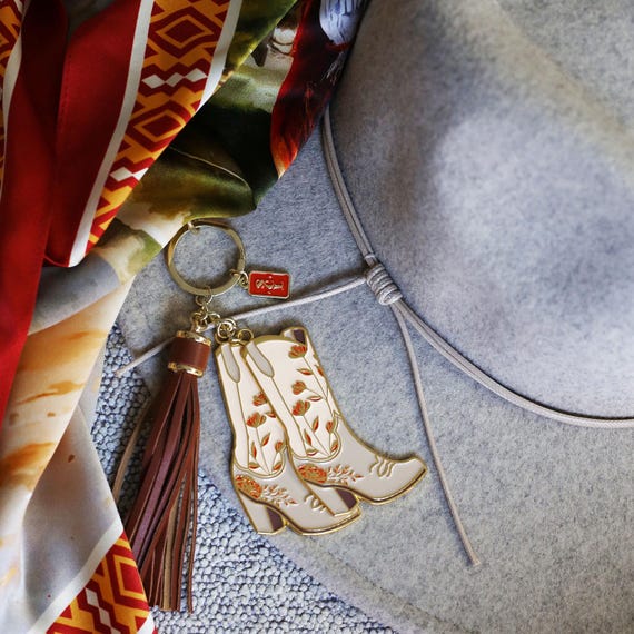 Mignon Femmes Sac Breloques Danse Violet Vache Cadeau pour Idée Porte Porte-clés Western Cadeau Porte-clés Western Cowboy Pour Femme, Accessoires De Cowgirl, Breloques Porte-clés Style Cowboy Rose Choix de Cadeau Réfléchi : Un présent parfait pour les anniversaires, les fêtes ou les occasions spéciales, ce porte-clés à thème cowgirl western est idéal pour les filles, les adolescentes et les femmes qui aiment les accessoires ludiques et stylés. Celebrate the spirit of the Wild West with this Cowboy Keyring, a beautifully crafted accessory that captures the rugged charm and timeless style of cowboy culture. Designed in deep brown tones with gold borders, this keyring evokes a vintage Western feel while adding a touch of elegance to your daily essentials. Parfait pour ajouter une touche de cowboy ou cowgirl à vos clés, sacs ou sacs à main. Le porte-clés dispose d'éléments occidentaux emblématiques, y compris un chapeau de cowboy rouge et des bottes de cowboy rouges assorties, le tout orné d'étoiles et de détails dorés Whether clipped onto your keys, attached to a bag, or used as a decorative piece, it blends functionality with character, making it a great way to showcase your love for cowboy style. Polyvalent et Décoratif : Idéal pour les clés, sacs à main, sacs à dos ou tirettes de fermeture éclair de pochette, ce porte-clés à thème cowgirl ajoute une touche de couleur et de personnalité aux objets du quotidien Crafted from durable and lightweight gold-tone alloy materials, this accessory is built to last, resisting wear while being easy to carry. Featuring three unique and detailed charms—a cowboy hat with star patterns, classic boots with star accents, and a bottle decorated with stars and heart motifs—this keyring showcases the perfect blend of rustic authenticity and refined design.