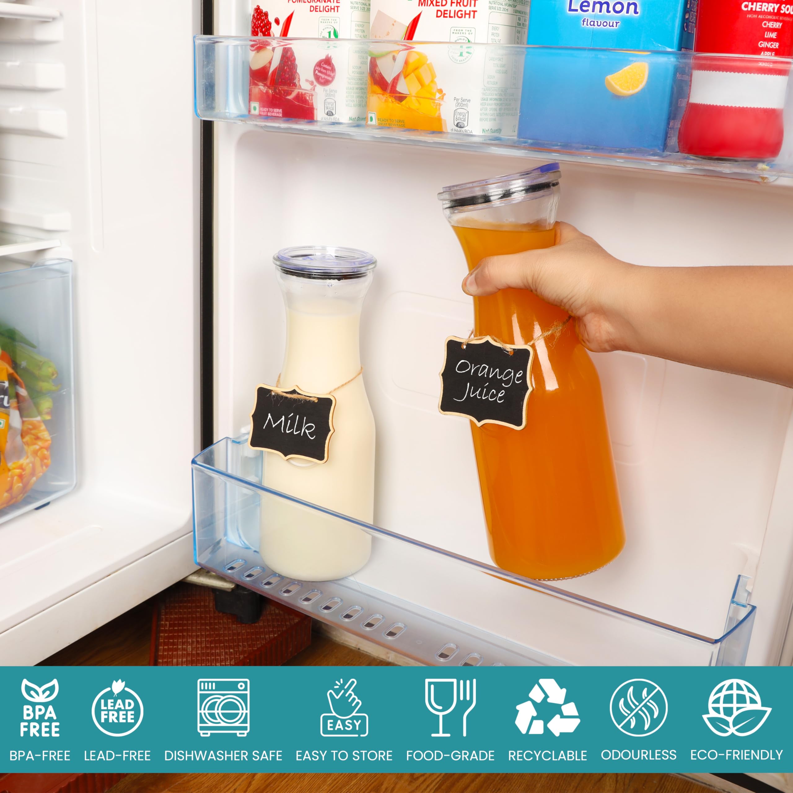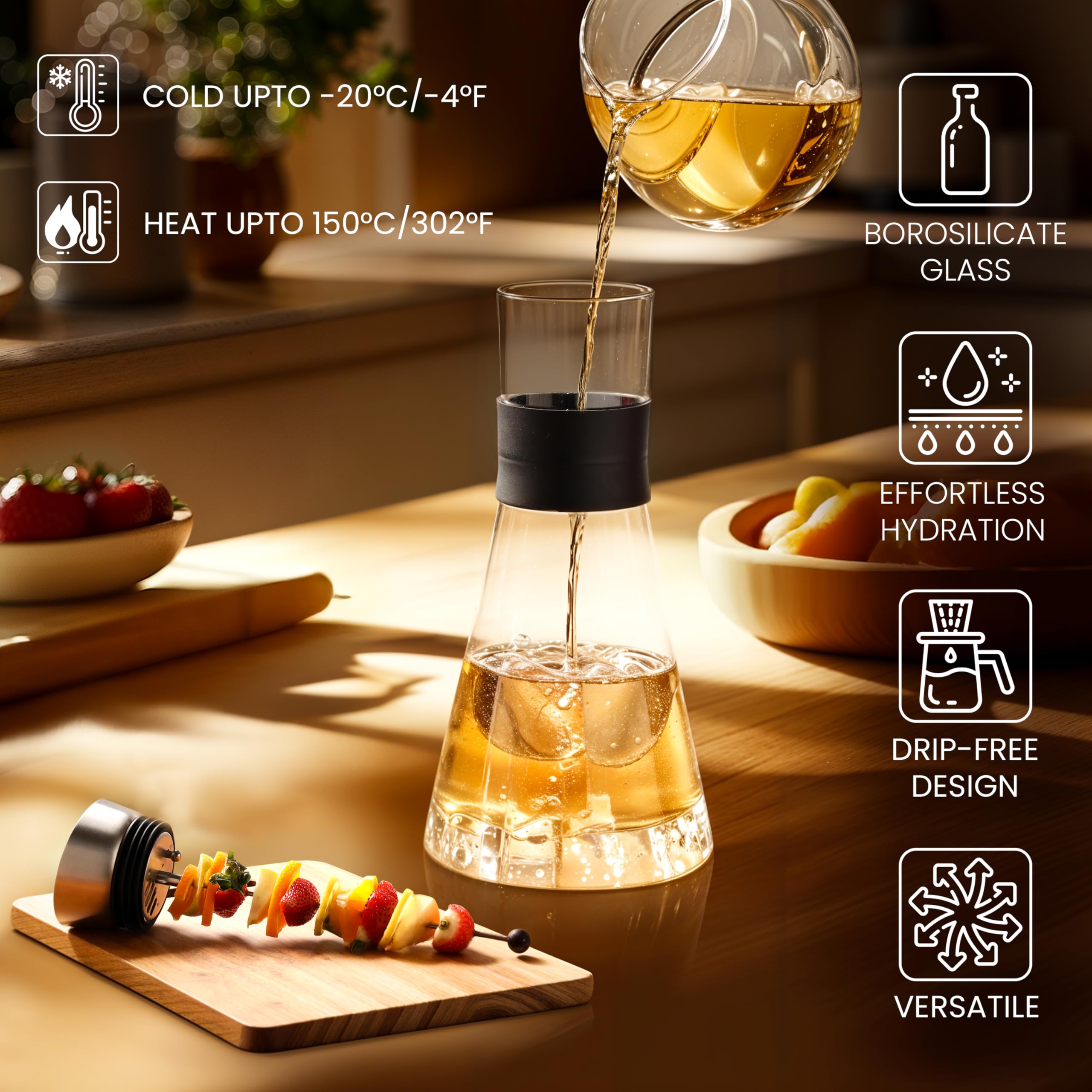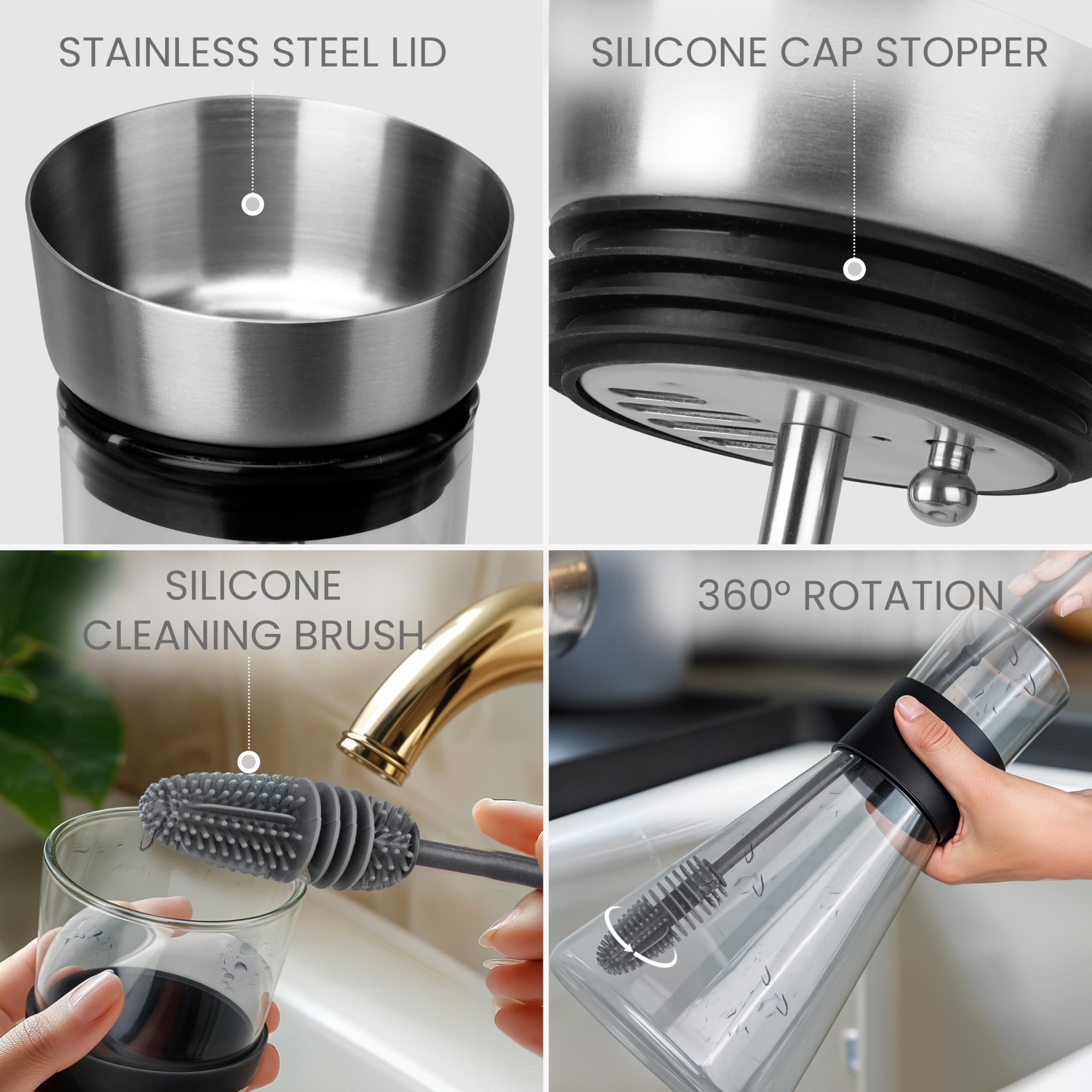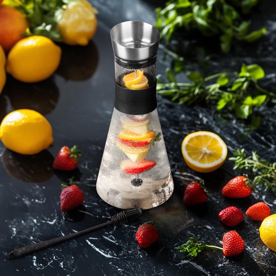 -Capacité de la bouteille thé glacé : 1,4L. NETTOYAGE FACILE : La large ouverture sur le dessus de la carafe en verre permet d’accéder facilement au fond, pour un nettoyage en toute simplicité. Le couvercle est amovible et les taches s’enlèvent d’un simple coup d’éponge Belle Vous Carafe à Eau en Verre avec Couvercle. ENTRETIEN SIMPLE : Cet ensemble comprend une brosse de nettoyage en silicone qui vous permet de maintenir la propreté de votre gourde infuseur fruit, en la gardant hygiénique. Le bec verseur du couvercle à gravité garantit un service sans déversement INSERTION DE FRUITS : Notre cruche a eau en verre comprend un insert de broche de fruits qui vous permet de créer facilement des cocktails infusés et savoureux. Cela ajoute une touche vibrante et saine à vos boissons et vous encourage à vous hydrater Carafe En Verre, Carafe En Verre, Carafe À Eau Avec Couvercle, Théière... Transformez votre routine d'hydratation grâce à cette carafe en verre de qualité supérieure avec couvercle en acier inoxydable. Pichet Avec Brosse Nettoyage Pichet En Verre Pykal 2.1L Avec Couvercle - Carafe Diamant Résistante à La Chaleur - Idéale Pour Boissons Froides Ou Chaudes Carafe Filtrante Bouteille En Verre Carafe En Verre De 1,8L, Pichet En Verre Avec Couvercle, Cruche D'eau En Verre Borosilicatu00e9, Transparent Pichet U00e0 Thu00e9 Glacu00e9 Avec Brosse, Carafe Eau En Verre Pour Jus, Boisson VERRE RÉSISTANT À LA CHALEUR : Fabriquée en verre borosilicaté épais et durable, cette bouteille infuseur à thé peut résister à des températures comprises entre -20 et 150 degrés Celsius, ce qui la rend idéale pour préparer des thés chauds ou glacés Avec son design élégant et son goulot étroit, elle est le complément parfait de votre table à manger ou de votre réfrigérateur. Infusez vos boissons sans effort grâce à la broche à fruits incluse, créant ainsi des saveurs vibrantes et rafraîchissantes à savourer tout au long de la journée. Inclus : -1x Carafe en verre avec bouchon en acier inoxydable et insertion de baton de fruits. -1x Brosse de nettoyage en silicone.