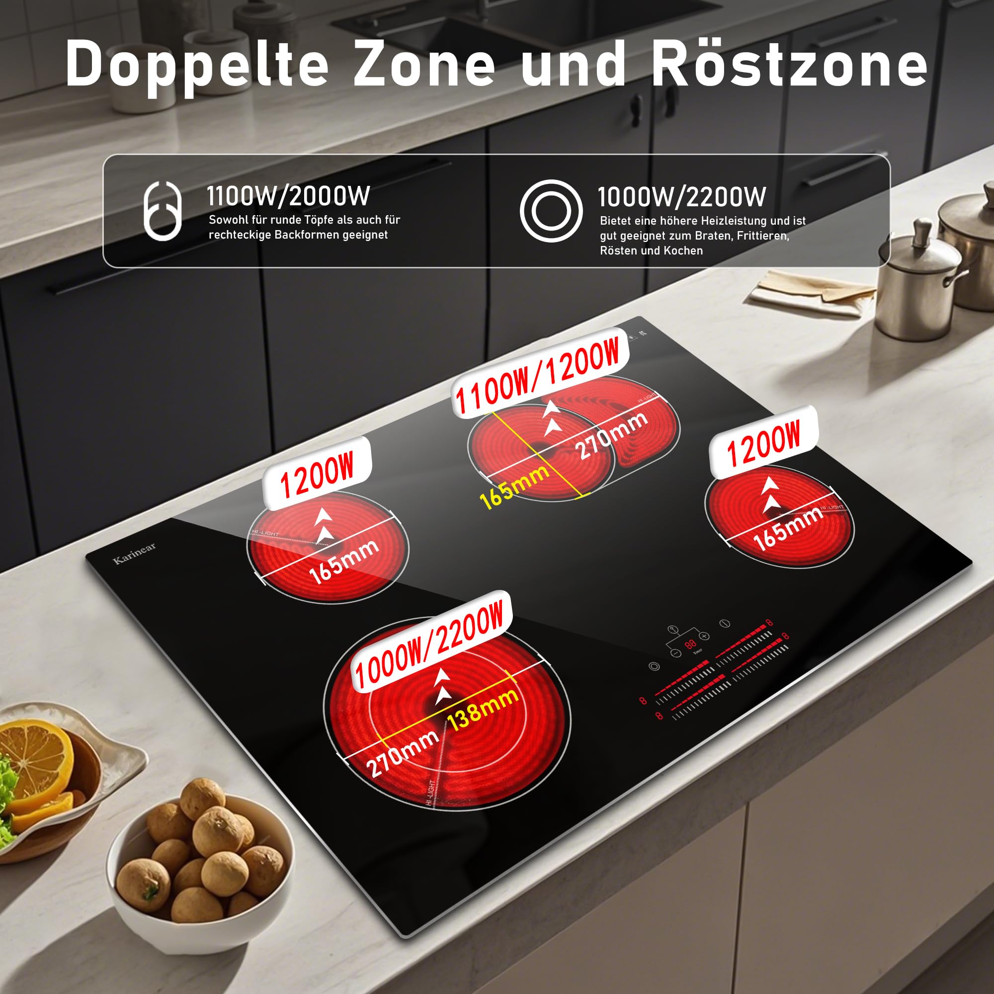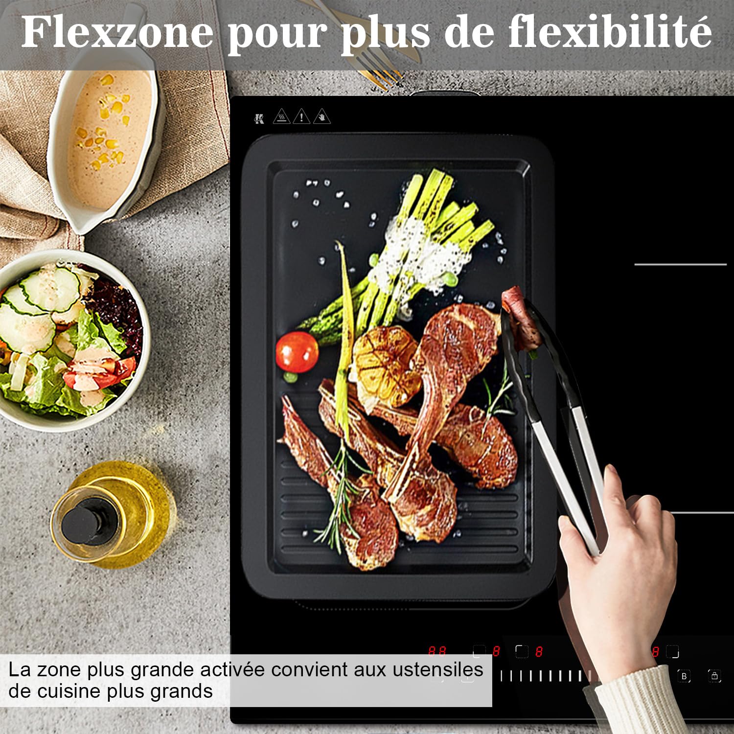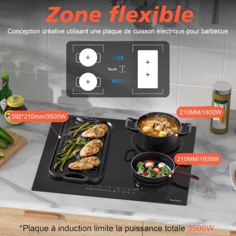 Karinear Plaque Induction Flexzone Avec Prise, Plaque De Cuisson Induction 60 Cm Encastrable Avec Commande Tactile Minuterie Securite Enfant Boost 220v 240v 3500w 85423879 Plaque Encastrable 90cm Flexzone Karinear Plaque Induction 4 Feux Avec Double Flexizone, Commande Par Bouton Magnetiquecommande Tactile Table Induction 4 Foyers Encastrable Avec Minuterie Securite Enfant Boost 220v 240v 7200w 86545887 Plaque Induction 5 Feux Karinear 📏【Dimensions intégrées】Ce four encastrable mesure 90cm x 52cm x 6., 1cm et s’adapte à un espace d’encastrement de 49cm x 87cm. ⚡【Puissance intelligente】Avec une puissance totale de 7200W, ce four ajuste automatiquement les niveaux de puissance lorsqu’il utilise plusieurs plaques simultanément, évitant ainsi toute surcharge. 🔄【Flex-Zone innovante】En activant la fonction Flex-Zone, les deux petites plaques de gauche peuvent être combinées en une grande plaque rectangulaire, idéale pour les grillades et les casseroles ovales. Découvrez notre analyse de la plaque induction Karinear 5 feux flexzone : évaluation détaillée de sa puissance, sa sécurité et ses fonctionnalités innovantes pour une cuisine moderne et efficace 🚀【Fonction Boost】Sélectionnez une plaque et activez la fonction Boost pour un chauffage rapide à pleine puissance pendant 5 minutes, parfait pour des cuissons rapides et efficaces. Plaque gaz 5 feux encastrable - Klarstein - 90 cm - tables de cuisson... ✨【Surface en verre céramique】La surface en verre céramique est non seulement élégante et esthétique, mais aussi facile à nettoyer, assurant un entretien sans effort. 🍳【Polyvalence culinaire】Ce four à induction est équipé de cinq plaques de tailles variées, répondant à tous vos besoins culinaires en permettant de cuisiner plusieurs plats en même temps.