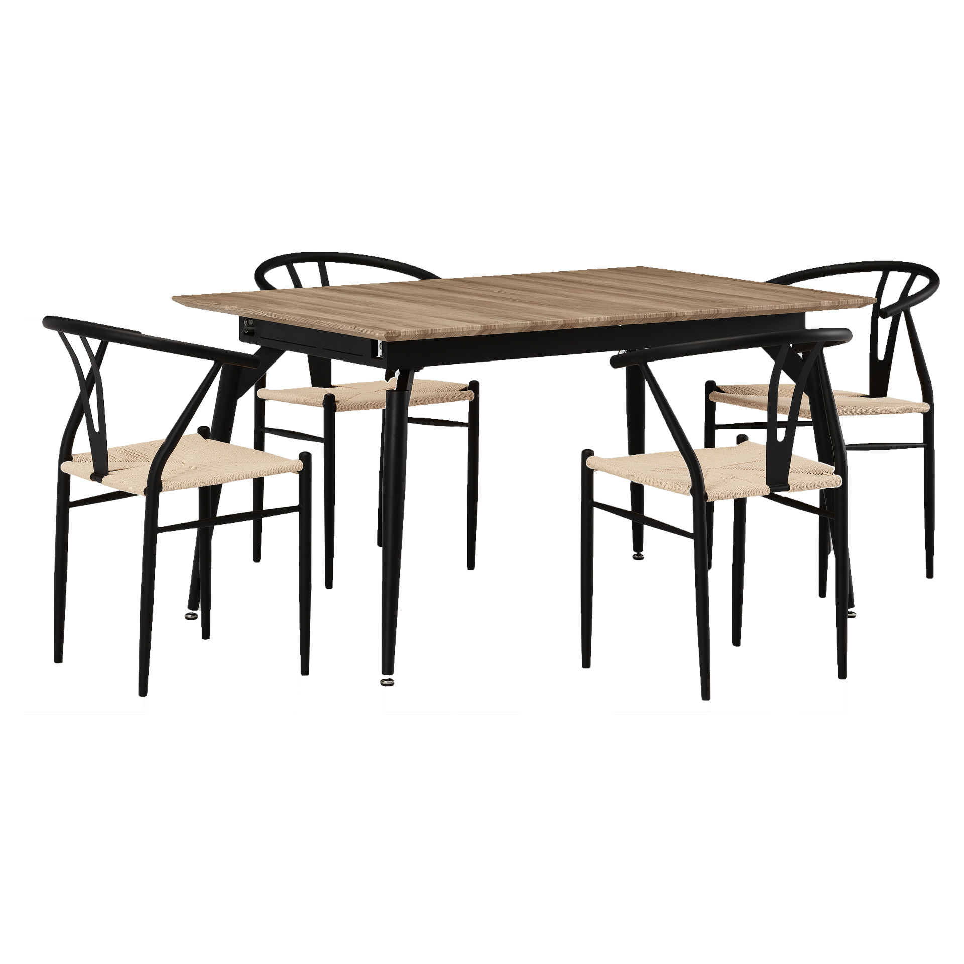 【Confort Ergonomique Garanti】:Les chaises du table et chaise sont rembourrées avec dossier haut pour un soutien optimal, idéales pour les longs repas. Son design modernealliant MDF et métal, avec chaises rembourrées, en fait un choix idéal pour lessalles à manger contemporaines., 1., Caractéristiques du produit : Matériau : Métal, MDF, Velouts Couleur : Noir, Blanc Dimensions : 1 table:140-197., 5 × 80 × 75., 5 cm 1 chaise: 44 × 41 × 86 cm Poids : 59., 3 kg Charge maximale : 1 table: 60 kg 1 chaise: 150 kg Emballage : 4 paquets Assemblage requis : oui 2., Scénarios d'utilisation à domicile: Parfait pour les repas quotidiens, réceptions ou comme espace de travailoccasionnel, ce set s'adapte à tous les besoins familiaux., 3., Design unique: Avec son mécanisme d'extension fluide, ses pieds croisés métalliqueset ses chaises ergonomiques rembourrées, il allie élégance moderne etfonctionnalité pratique. 【Structure Robuste et Durable】:Fabriqué en MDF résistant avec pieds croisés en métal, ce set allie stabilité exceptionnelle et design contemporain. Table Bois Extensible Table De Salle à Manger En Bois Et HPL 135 X 80 【Style Moderne et Épuré】:Avec son plateau bois et ses accents métalliques, cet ensemble apporte une touche élégante à tout intérieur. Table À Manger Extensible En Noyer 1012 - Table BUT Table Extensible Avec Chaises Ensemble Salle à Manger 9 Pièces - Table Rectangulaire Extensible Table Salle à Manger Table extensible design de salle à manger en bois – Sipario