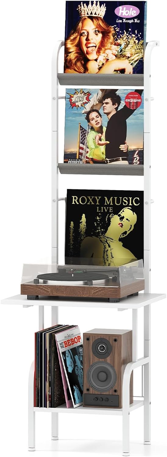 Ce support pour tourne-disques dispose de 3 étagères en tissu Oxford sur le dessus pour organiser vos vinyles et faciliter la recherche rapide de ce dont vous avez besoin. Maison - Découvrez notre offre GOPLUS Meuble de Rangement pour Tourne-disques avec Rangement à 5 Niveaux, Étagère Organisatrice pour Vinyles, 50x51x145CM,Blanc. Livraison gratuite à partir de 25€* | Paiement sécurisé | 4x possible | Retour simple et rapide Les baffles anti-chute aident à maintenir les objets en place et à éviter les chutes. Disques faciles à trouver : Cette étagère pour vinyles dispose de 3 niveaux de rangement spacieux pour les vinyles, facilitant l'organisation et l'exposition de vos disques selon vos préférences. Il est non seulement idéal comme support pour vinyles dans un salon ou un studio, mais aussi adapté pour servir d’étagère de rangement dans une chambre. étagère Rangement Disques Vinyles Tissu Oxford étagère Disques Vinyle Support Tourne-disques 5 Niveaux GOPLUS - Meuble Vinyle 145cm Avec étagères Oxford, 50x51x145cm Support Audio Hi-fi Meuble Vinyle Platine La hauteur adéquate du support (145 cm) facilite grandement l’accès aux disques sans avoir besoin de se baisser. Design vertical, sans avoir à se baisser : La hauteur de notre support pour tourne-disques est de 145cm, un design pratique qui permet d'accéder facilement à vos disques sans avoir besoin de vous baisser. En outre, le design vertical utilise efficacement l'espace vertical, offrant un rangement sans prendre trop de place au sol. Structure métallique robuste pour plus de stabilité et durabilité Hauteur adéquate de 145cm pour un usage plus confortable sans avoir à se baisser Jeux anti-basculement fournis pour fixer solidement au mur Baffle anti-chute pour maintenir les objets en place Coussinets réglables pour maintenir la stabilité sur des sols irréguliers INFOS SPÉCIFIQUES : Couleur : Noir et Bois Rustique Matériaux : Métal, Tissu Oxford, Panneaux de particules Dimensions totales : 50 x 51 x 145 cm (L x l x H) Dimensions de l’étagère supérieure en tissu : 32 x 16 cm (L x l) Dimensions de l’étagère intermédiaire en tissu : 32 x 28 cm (L x l) Dimensions de l’étagère inférieure en tissu : 32 x 29 cm (L x l) Dimensions du plateau : 50 x 39 cm (L x l) Hauteur du plateau : 54,5 cm Dimensions de l’étagère inférieure en bois : 33 x 30 cm (L x l) Hauteur du sol : 13,5 cm Capacité de charge de chaque étagère en tissu : 5 kg Capacité de charge du plateau : 60 kg Capacité de charge de l’étagère inférieure en bois : 20 kg Poids net : 7 kg Meuble Vinyle GOPLUS Support Pour Plantes U00e0 5 Niveaux U00e9tagu00e8re D 039 Angle Pour Plusieurs 582362 Le large plateau est parfait pour la plupart des tourne-disques, tandis que l'étagère inférieure offre de l’espace pour des platines, des équipements audio et bien plus. Table À 2 Niveaux pour Tourne-disques, Support de Table Tournante...