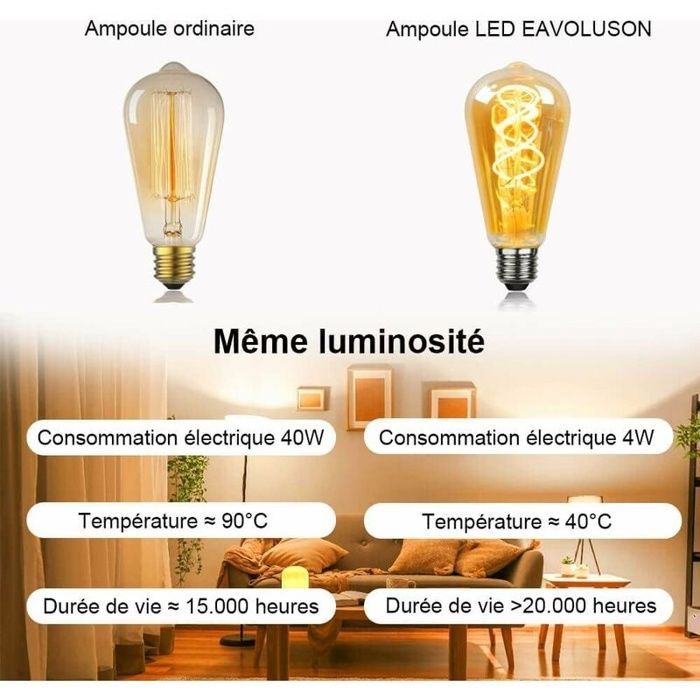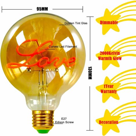150lumens, également à 15 W ampoule à incandescence; , Dimmable; Grande étoile avec un verre de teinte doré soufflé à la main; 2000kelvin, super jaune chaud; Lampe Vintage Atmosphère TIANFAN Ampoule LED Vintage 220 Mm Ampoule Edison Géante 4 W Dimmable LED Spécialité Ampoule Décorative 220-240 V E27 (Golden Ampoule E27 Vintage Osram E27 LED Star 4W 420lm 2700K melegfehér 300° - 37W izzó helyett BRIGHT STAR 4W ES LED 131 FILAMENT BULB | LITE-GLO HUSTUNG Ampoule LED E27 Vintage, Ampoule E27 Vintage Dimmable 4W T45,Ampoule Vintage E27 Blanc Chaud 2200K, Ampoule LED Vintage Idéal Pour Suspension, Lampe de Table, Applique - 3 paquets