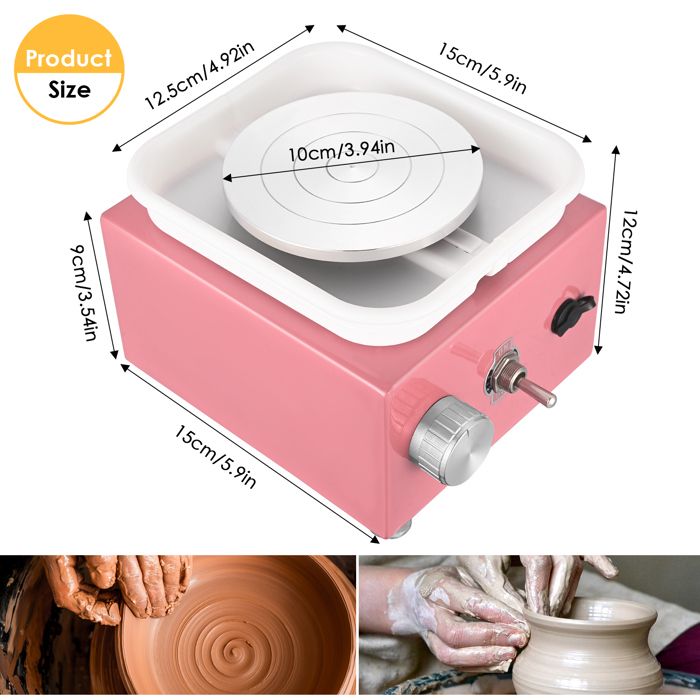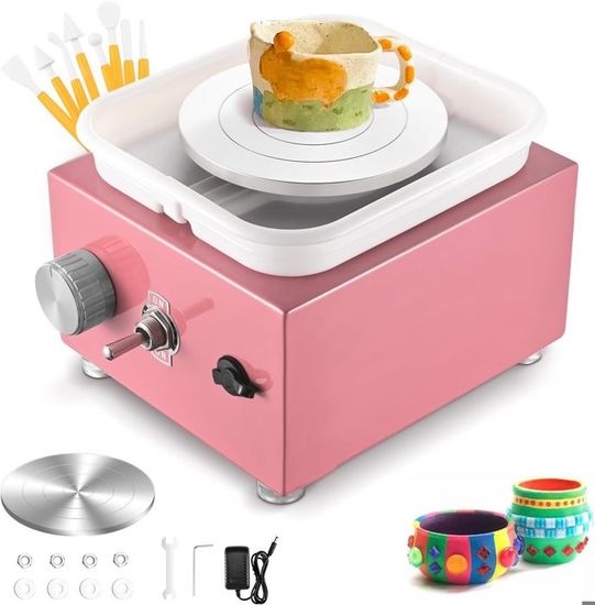 Tour Mini 2000 Tr/min Tour De Potier Pour Enfant -TTLIFE- Mini Tour Poterie électrique Pour Enfants - 60W - Beaux-Arts Et Loisirs Créatifs Plateau Tournant 6.5cm 10cm 🎁【Cadeau idéal】Notre poterie enfant peut développer les compétences manuelles et l'expression artistique des enfants, vous permettant ainsi de passer de bons moments ensemble. TMISHION Machine de tour de poterie Mini machine à roue de poterie à... Bassin ABS Amovible et Facile à Nettoyer] : Le tour poterie est conçu avec un bassin ABS amovible, qui peut bloquer les éclaboussures d'eau et d'argile et garder la zone de travail propre Elles mesurent respectivement 10 cm et 6,5 cm de diamètre. Son esthétique élégante et ses couleurs vives vous enchanteront, vous et votre enfant, lorsque vous créerez vos propres œuvres d'art ensemble. Yofuly achine de poterie USB avec 6 outils de odelage de poterie 2000 Il peut être utilisé dans les écoles, les ateliers de poterie, les studios et les bricoleurs, s'adressant aussi bien aux professionnels qu'aux amateurs. Caractéristiques du produit Plaque rotative de 10 cm et 6,5 cm Mini taille et portable Moteur puissant et faible bruit Bassin amovible en ABS Matériau métallique durable Outils de sculpture entièrement équipés Spécifications du produit : Tension : 100-240 V Matériau : métal et alliage d'aluminium Diamètre du plateau tournant : env. 🎁【Moteur puissant, silencieux】Notre tour de potier enfant est équipé d'un moteur de haute qualité avec une vitesse réglable de 0 à 2000 tr/min. 🎁【Plaques de 10 cm et 6,5 cm】Le poterie adulte kit pour enfants est livré avec deux tailles de plaques pour répondre à tous vos besoins créatifs. Vous pouvez facilement créer des poteries et des objets en céramique. 🎁【Utilisation polyvalente】Le tour de potier adulte est adapté à la coulée par projection, à l'enseignement de la céramique et aux loisirs. Vous pouvez choisir un plateau différent selon vos besoins. 6,5 cm/2,56 et 10 cm/3,94 Charge : 0,5 kg Vitesse à vide : 0-2000 tr/min Contenu de l'emballage : 1 * Tour de potier 1 * Adaptateur secteur 8 * Outil à argile 1 * Plateau tournant de 10 cm 1 * Plateau tournant de 6,5 cm 1 * Tournevis 1 * Accessoire