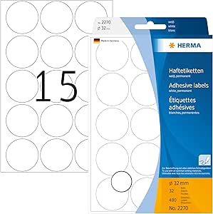 Pour inscrire avec tout stylo, crayon ou machine à écrire. Les étiquettes et leur papier support est en cellulose blanchie sans chlore, l'adhésif est sans solvant. Ne conviennent pas aux imprimantes. Étiquettes GENERIQUE HERMA - étiquettes multi-usage, 8 x 20 Type de matériau : papier , Couleur : blanc , Poids : 0., 02 kilogrammes HERMA Étiquettes univers. 12x30mm 2350 blanc 1120 pcs./32 feuilles - Office World Trade AG étiquettes Bureau HERMA étiquettes SuperPrint - Diam 85mm - Bord - Blanc étiquettes Papier 8x20mm Blanc 2240 Pièces HERMA 2320 étiquettes multi-usages 8x20 mm papier blanc mat lettrage manuel 2240 pièces. Etiquettes polyvalentes, autocollantes. Idéal pour l'étiquetage, le marquage, l'adressage et l'organisation. Respect de l'environnement: papier spécial de haute qualité, blanchi sans chlore, adhésif sans solvant. Papier label blanc certifié PEFC