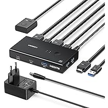 【Fiabilité Professionnelle】 Boîtier métallique avec ventilation thermique pour une stabilité 24/7., Prend en charge EDID adaptatif, HDMI 2., 0, décryptage HDCP 2., 2 et débit de 18 Gbps pour une lecture fluide de contenus 4K Blu-ray/Netflix. Garantie 12 mois + support technique à vie par Steetek. Commutateur Bureau Gaming Métal Commutateur PC Moniteur Partage Clavier Commutateur KVM HDMI 2 PC 2 Moniteurs - USB 3.0, 4K@60Hz - Partage Clavier/souris - Remote Filaire - YOUTINGHDAV Switch 2 PC 2 écrans Switch KVM 4K 60Hz USB 3.0 【Netteté Ultra HD 4K@60Hz】 Résolution cristalline de 3840x2160@60Hz via HDMI 2., 0 (18 Gbps). Son design compact économise de l'espace, augmente la productivité et élimine le besoin d'écrans ou périphériques supplémentaires. YOUTINGHDAV Commutateur KVM 2 PC 1 moniteur 8K @ 60Hz 4K @ 120Hz, USB 3.0 Commutateur KVM HDMI 2.1 HDCP 2.3 pour 2 ordinateurs partagent clavier souris avec télécommande filaire Compatible avec les appareils 1080P/1440P et HDMI 1., 4., Astuce pro: Utilisez des câbles HDMI 2., 0 et vérifiez la compatibilité 4K pour des performances optimales., 【Hub USB 3., 0 Haut Débit et Commutation Instantanée】 Transfert de fichiers à 5 Gbps sur 3 ports USB 3., 0., Le commutateur KVM permet de basculer entre appareils en 2-4 secondes via un bouton, idéal pour partager webcams/micros en streaming live. 【Optimisation d'Espace pour Deux Systèmes】 Ce commutateur KVM HDMI 2 PC 1 écran permet de contrôler simultanément deux appareils (ex. Coutateur KV HDI double oniteurs 2 ordinateurs, affichage étendu...