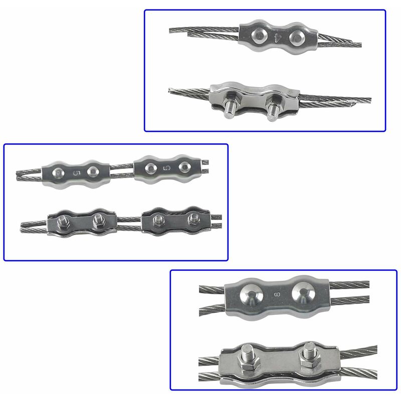 Lot De 12 Clips De Câble Métallique M3 En Acier Inoxydable Avec 12 Boucles De 3 Mm 12 Clips De Manchon En Aluminium Pour Cable Metallique De 3 Mm De Diametre