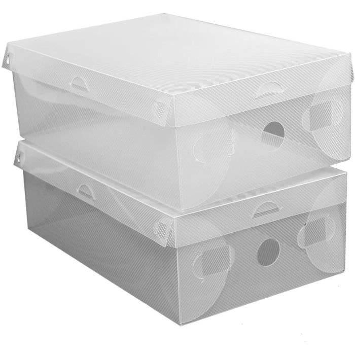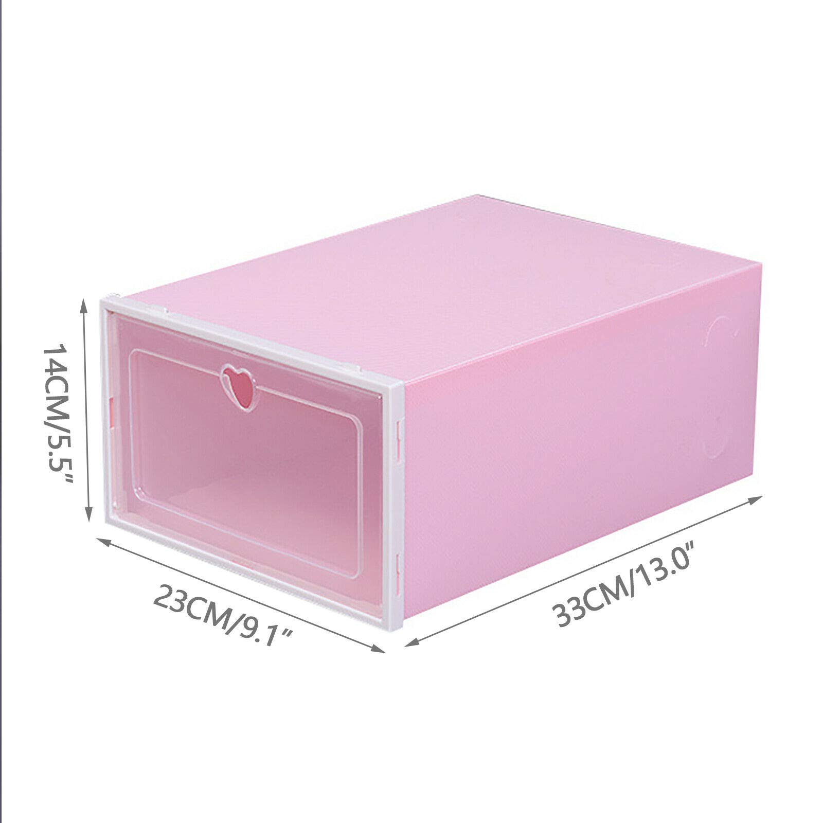 Il est idéal pour les petits kits, magazines, livres, vêtements et documents. Il peut également être utilisé comme organisateur et rangement d'armoire, tiroir de rangement et organisateur d'étagère pour les petits objets. Belle apparence : les couleurs de la boîte à chaussures les rendent attrayantes. L'ensemble de boîtes à chaussures peut contenir des chaussures de moins de 31 cm de longueur et moins de 13 cm. Chaque taille de produit : 33 x 23 x 14 cm / 13 x 9,1 x 5,5 pouces Type 1 : rose (20 boîtes à chaussures roses) Type 2 : vert (20 boîtes à chaussures vertes) Type 3 : 5 couleurs (4 boîtes à chaussures violettes, 4 boîtes à chaussures blanches, 4 boîtes à chaussures roses, 4 boîtes à chaussures vertes, 4 boîtes à chaussures bleues) Contenu de la livraison : 20 boîtes à chaussures. Chaque lot contient 20 pièces, fabriquées en plastique de haute qualité, robuste et durable avec des trous respirants pour éviter que les chaussures ne moisissent et gardent votre armoire à chaussures bien rangée et organisée Organisation Dressing Meuble Rangement Modulaire 91x31x93cm - Cubes Plastique Rose - Pour Chaussures & Objets Meuble Rangement PP Enregistrer en hauteur et satisfaire les besoins de la plupart des gens. Il vous suffit de connecter les pièces en suivant la vidéo sans outils de montage, ce qui vous apportera plus de commodité. Combiné avec des lignes lisses, le produit a une sensation moderne et à la mode et peut s'adapter à une variété de pièces dans différents styles. Gain de place : la taille de chaque boîte à chaussures est de 30 x 20 x 13 cm, et elle peut être pliée, démontée et empilée, de sorte que vous pouvez la placer selon la disposition de la pièce à volonté et économiser de l'espace dans une plus grande mesure. Boîtes Empilables 33x23x14 Cm Boite Chaussure Boîtes à Chaussures Transparentes Empilables - Lot De 6, Rangement Pliable Jusqu'à Taille 46 Boîtes Chaussures Lot Boîtes Rangement Chaussures Empilables Plastique Gain de place : la boîte de rangement à chaussures mesure 33 x 23 x 14 cm et peut être pliée, démontée et empilée, de sorte que vous pouvez la placer à volonté en fonction de la disposition de la pièce, ce qui permet d'économiser de l'espace dans une plus grande mesure Type 1 : rose (20 boîtes à chaussures roses) Type 2 : vert (20 boîtes à chaussures vertes) Type 3 : 5 couleurs (4 boîtes à chaussures violettes) 4 boîtes à chaussures blanches 4 boîtes à chaussures roses 4 boîtes à chaussures vertes 4 boîtes à chaussures bleues Porte : il y a une porte devant chaque boîte à chaussures, de sorte que vous pouvez facilement placer et enlever vos chaussures en un rien de temps. La boîte à chaussures est étanche à la poussière et à l'humidité, évite la scène embarrassante des chaussures qui se salissent et se salissent et protège mieux vos chaussures. Détails : Vente en forme de cœur : chaque boîte à chaussures est équipée d'une ventilation en forme de cœur, qui est non seulement à la mode et belle, mais favorise également la circulation de l'air et empêche les chaussures de devenir humides et d'odeurs. Caractéristiques : Matériau : PP, PC Couleur : violet, blanc, rose, vert et bleu. Étape d'installation facile : la boîte à chaussures est simple dans la structure et une vidéo d'installation est fournie.
