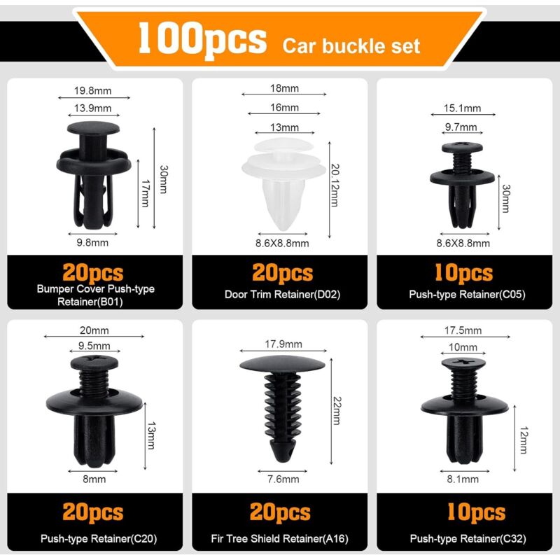 1000 Pièces Rivet Clips Plastique, Clips Plastique Voiture Clips Plastique Voiture 155PCS ,Clips De Fixation,6 Types Différents Clips De Fixation Voiture [Largement utilisé] : les clips de fixation pour voiture conviennent à la plupart des voitures, camions, SUV, fourgonnettes, motos, etc. Matériau : Plastique Couleur : Noir Quantité : 155 Contenu de la boîte : -155 clips de fixation pour voiture Avantages : -Matériau : Fabriqué en plastique de haute qualité, imperméable et résistant à l'usure -Fonction : Pour fixer des pièces automobiles, remplacer des clips décoratifs et des clips de panneau de porte -Installation : Retirez simplement les clips de carrosserie d'origine et appuyez doucement -Quantité : 155 clips de fixation pour voiture -Applicable : Convient à la plupart des voitures, camions, SUV, fourgonnettes, motos, etc. Il est difficile à endommager ou à casser et offre une longue durée de vie. EN STOCK : Lot De 190 Clips De Fixation Universels En Plastique Pour Garde- Boue De Voiture , Kit De Clips De Fixation De Pare-chocs Avec Outil De Retrait De Panneau, AG004997HJ Pas Cher Facile à utiliser, il ne blesse pas les mains. tsooning 50 Pièces Rivets en Plastique pour Voiture, 6... Il se retire ou s'installe facilement. [Matériaux de haute qualité] : Le clip de fixation pour voiture est fabriqué en plastique de haute qualité, élastique, imperméable et résistant à l'usure.