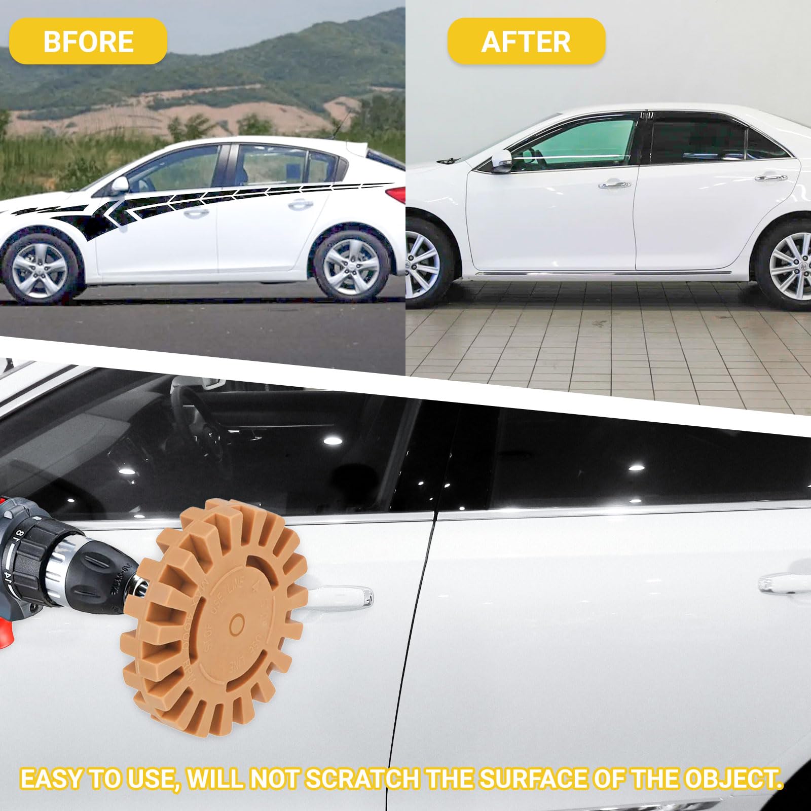Polyvalent : Le roue de gomme en caoutchoucest idéal pour enlever la colle, pour poncer et peut être utilisé pour enlever les autocollants de carrosserie, les autocollants de porte et plus encore. Ce Que Vous Recevez : Vous recevez 4pcs gommes à film avec adaptateur pour répondre à vos différents besoins Facile à Utiliser : Le roue de gomme s'installe facilement sur les perceuses électriques et les meuleuses d'angle disponibles et enlève rapidement et facilement les autocollants et les résidus de colle. Grattoir Plaque Induction Gommes à Roue Jaune, Lot De 2 Gomme Rayure Voiture Avec Adaptateur, Disque Pneumatique Gomme, Gomme Carrosserie Pour Éliminer Les Rayures, Autocollants, Convient à Voiture, Moto Roue De Gomme Adaptateur Pour Roue Caoutchouc Extensible Gomme à effacer caoutchouc 120 Roue gomme cannelée (avec adaptateur) pour masse adhésive