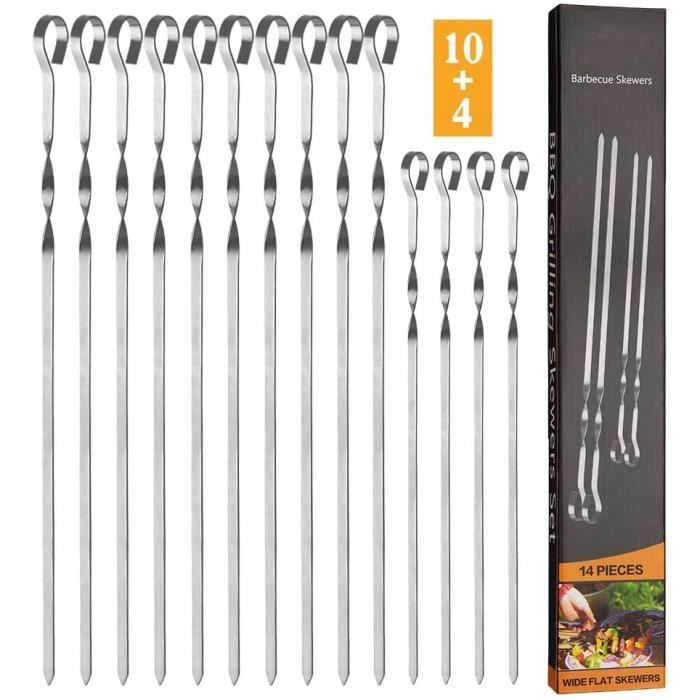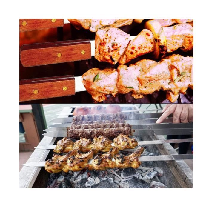 Transformez votre cuisson en plein air avec des brochettes de barbecue durables conçues pour une utilisation répétée. Transformez votre cuisson en plein air avec des brochettes de barbecue durables conçues pour une utilisation répétée. Ces longues brochettes de cuisson sont des outils de cuisine polyvalents, parfaits pour griller des légumes, des fruits, du poulet, du bœuf, du porc, des crevettes et du poisson Que vous soyez en camping ou en train d'organiser un barbecue, ces accessoires pour brochettes offrent fonctionnalité et facilité. Contrôle Amélioré : Technologie biseautée avancée pour un enfilage sans effort, avec mécanisme à double fourche stabilisant les aliments. La structure à double fourche stabilise parfaitement les aliments sur le grill. Accessoire Barbecue Camping Extérieur Brochettes En Métal Pour Brochettes, Brochettes Plates Pour Griller Brochettes Réutilisables Bois Acier Inox Conçues pour répondre aux besoins de chaque amateur de grillades, elles simplifient la préparation des aliments et rendent agréable toute occasion en plein air. Résultats de barbecue homogènes et maîtrisés. Fonctionnalité Équilibrée : Chauffe homogène des aliments assurée. Ergonomie supérieure : Poignée en bois avec antidérapante et courbe anatomique pour un confort maximal dans la paume. Brochettes de barbecue - QQMORA - 10 pièces - Poignée en bois Assure stabilité et contrôle précis lors des longues sessions de grillade, limitant les tensions musculaires. Ustensile,Brochettes de Barbecue plates en acier inoxydable,6 pièces...