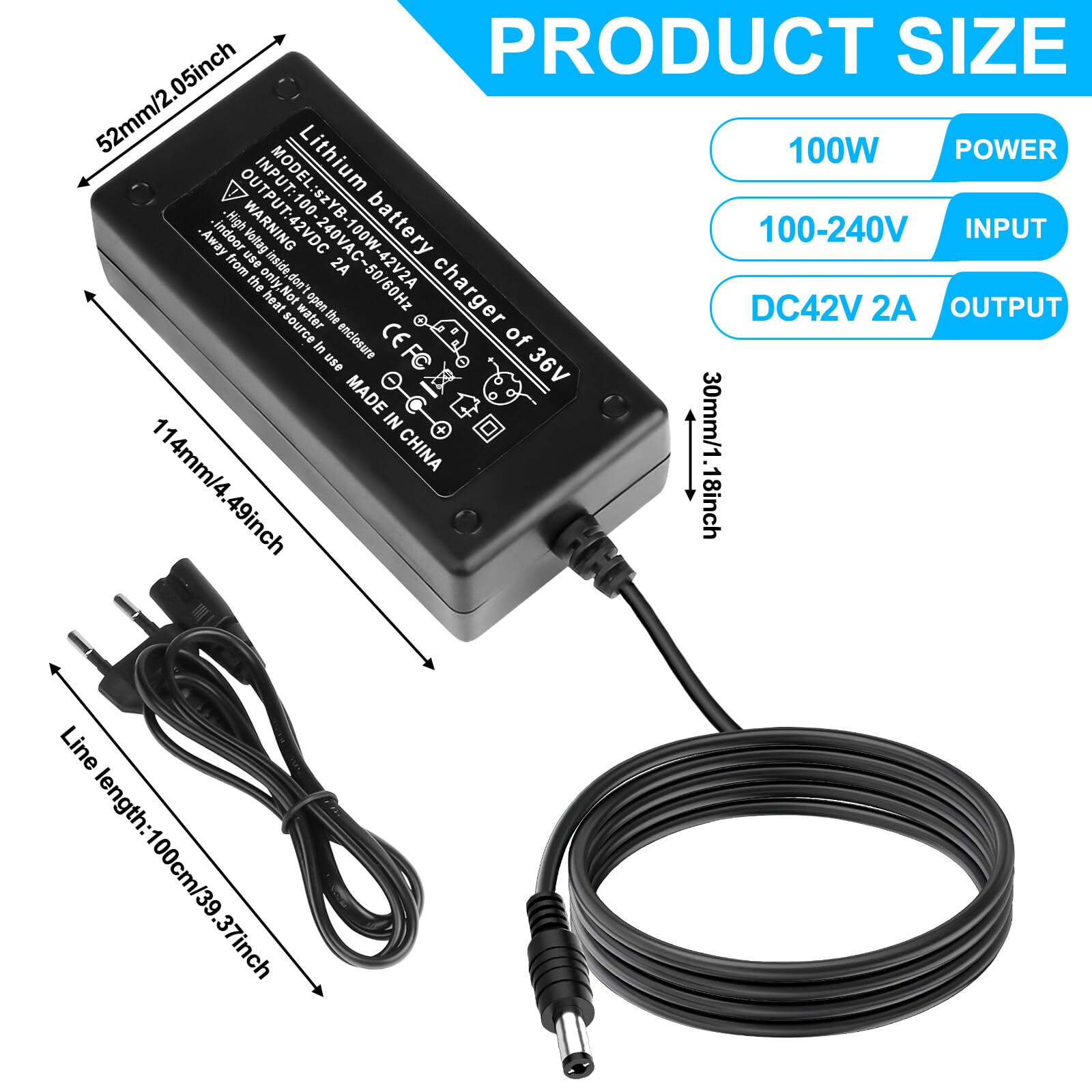 Si vous avez des questions sur ce produit 170g Témoin lumineux : La lumière rouge s'allume pendant la charge et la lumière verte s'allume lorsque la batterie est pleine. Seule la lumière verte est affichée : La voiture n'a pas été utilisée pendant une longue période, la batterie ne peut donc pas être rechargée normalement. Le chargeur de batterie pour vélos/scooters électriques est un parfait remplacement pour le chargeur cassé. Le chargeur de batterie Pour trottinette électrique est fait de matériaux de haute qualité pour une bonne qualité, est solide et durable, pas facile à endommager et a une longue durée de vie. Charger 3 Pin Argos Cordon De Charge Hoverboard Pour Scooter électrique, 42V 2A Cordon De Charge Avec 6 Connecteurs Pour Scooter électrique, 36V Power Adaptateur D'alimentation Pour Balance Hoverboard, Prise UE Batterie Hoverboard 【Sécurité & protection contre les surcharges】- Le chargeur de scooter électrique Léger, petit, stable, très efficace, sûr, etc. Vous pouvez l'utiliser facilement et librement pour le recharger. 1) Pour savoir si ce produit est adapté à votre scooter? 2) Déterminez s'il s'agit d'une batterie au lithium (nos produits sont utilisés pour les batteries au lithium). 【Conception de dissipation de chaleur】- Par rapport à la plupart des chargeurs sur le marché, notre câble de charge pour hoverboard 42V 2A pour scooter électrique dispose d'un dissipateur thermique en aluminium, une bonne conception thermique peut mieux refroidir le dispositif de puissance. Chargeur 42V 2A 5.5*2.5mm Pour Trottinette Électrique Xiaomi Et Autres Spécifications : Tension d'entrée : 100-240V 50/60HZ Tension de sortie : Tension constante 42V Courant de sortie:Courant constant 2A Diamètre extérieur de l'interface à 3 trous : 9mm Longueur de la ligne : 1m Type de connecteur : 3 trous Diamètre extérieur de trois trous : 9mm Poids de l'article : Env. La satisfaction du client est notre priorité absolue. Le module de protection intelligent intégré peut prévenir efficacement les courts-circuits, les surintensités, les surcharges et autres problèmes, et prendre soin de votre équipement de charge. Contenu de l'emballage : 1 * Câble de recharge hoverboard pour scooter électrique 6 x connecteurs d'interface Remarque et recommandations : Avant d'acheter, veuillez vérifier que votre modèle, votre taille, vos spécifications, vos paramètres, etc., correspondent à nos produits. Chargeur électrique 42V 1,5Ah pour ducati Hangzur - Chargeur de batterie adaptateur sortie 42V-2000MA électrique 【Tipp】 : Veuillez vérifier soigneusement la taille de la fiche avant d'acheter.