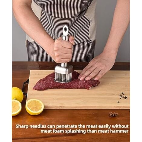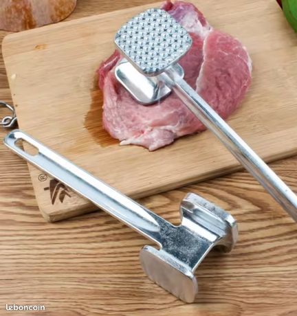 Utilisation : Convient à la fois pour un usage personnel dans votre propre cuisine, mais aussi pour un usage professionnel comme les restaurants, les pubs et bien plus encore, grâce à ses 2 côtés, nous pouvons l'utiliser pour de nombreuses utilisations et façons. Marteau attendrisseur de viande – My patiss Avec cet ustensile de cuisine, nous pouvons aplatir, écraser des tranches de viande très facilement, attendrir du bœuf, du porc, du poulet et d'autres viandes avec un seul outil. de longueur avec un diamètre des 5 cm. Contenu : Attendrisseur de viande en aluminium avec un poids de 200 grammes. Côté ondulé Le côté ondulé sert à attendrir, aplatir et ramollir la viande pour la rendre plus juteuse et pour cuire plus uniformément et plus rapidement. Yopinmall Attendrisseur de viande, marteau à viande en acier inoxydable, maillet double face Matériau : La structure en aluminium confère à cet ustensile de cuisine légèreté et facilité d'utilisation. Lorsqu'un steak est traité avec un maillet à viande, il est possible de réduire le temps de cuisson, ce qui permet d'économiser de la consommation et d'obtenir une viande plus juteuse. Application : Marteau batteur pour mariner, aplatir et attendrir des tranches de viande, des steaks, mais également utile pour écraser l'ail, casser des noix et des fruits secs. Attendrisseur de viande marteau double face, attendrisseur de viande... Ustensile Cuisine Marinade Attendrisseur De Viande à Deux Côtés, Marteau à Viande, Pour Steak De Poulet Au Bœuf Et Au Porc Marteau A Viande Côté pointu Côté formé de pointes qui, en plus d'attendrir la viande, sont très utiles pour la marinade, garantissant que les arômes pénètrent en profondeur, ce qui permet d'obtenir une marinade optimale et uniforme.