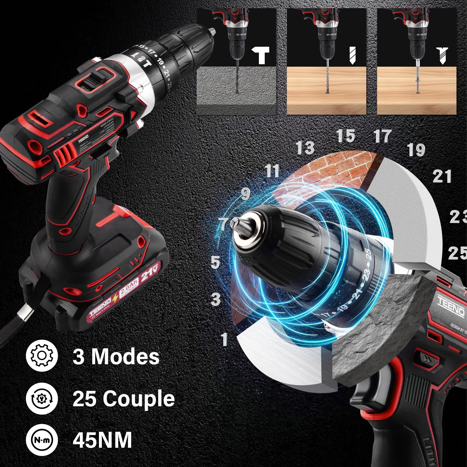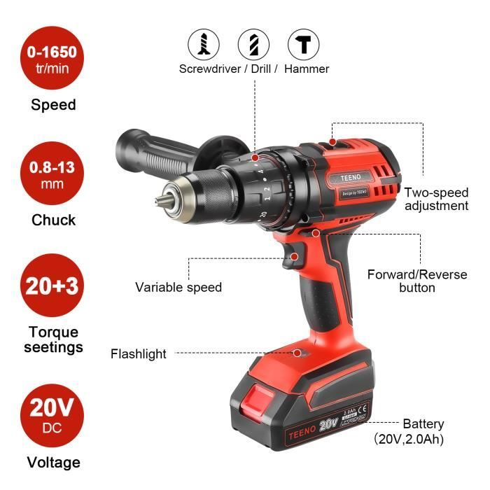 Son mécanisme à impact (0-21 750 cps/min) fournit une puissance supplémentaire pour les travaux exigeants comme le montage de meubles, la construction d'étagères ou la réparation de vélos, sans effort. Kit visseuse sans fil 45Nm Perceuse-visseuse sans fil avec 2x batteries 45 Nm Perceuse à percussion Réglages de couple 20 + 3, 20 réglages 2 vitesses variables (0-650 tr/min ; 0-1650 tr/min) Pour percer (jusqu'à 30 mm) et visser (jusqu'à 10 mm) Cette configuration double vous permet de travailler sans interruption : utilisez une batterie pendant que l'autre charge. Une solution tout-en-un, soigneusement sélectionnée pour vous équiper dès le déballage, vous faisant gagner du temps et de l'argent. KIT PROFESSIONNEL COMPLET - 25 ACCESSOIRES:Prêt à l'emploi ! La perceuse visseuse à percussion 45Nm perce et visse dans le métal et le bois, tandis que la visseuse à choc déboulonne et assemble avec une rapidité impressionnante. TEENO Perceuse Visseuse Sans Fil 21V ,45 Nm Visseuse Devisseuse Sans Fil,Brosse Antirouille 3VISSEUSE À CHOC - EFFICACITÉ MAXIMALE:Optez pour la rapidité avec la visseuse à choc. 25 accessoires & lampes LED 1 × clé à chocs 1 x perceuse à percussion 2 × Batterie Li-Ion 2,0 Ah 1 × chargeur 6 × vis à embout 8 × Mèches 4 × Jeu de clés à douille 1 × Arbre à cardan Idéale pour percer le bois jusqu'à 30 mm et l'acier jusqu'à 10 mm, ou pour visser sans endommager les matériaux les plus délicats. Perceuse-visseuse à percussion RYOBI 2 vitesses 18V ONEPLUS Brushless... TEENO Perceuse Visseuse Sans Fil 21V Pour Batterie Makita 2 Batteries 2.0Ah, 45Nm Max Perceuse Percussion Sans Fil,39 Accessoires et Valise,25+3 RéGlages de Couple,3 brosses de nettoyage,2 Vitesses,LED Une combinaison parfaite de précision et de force.