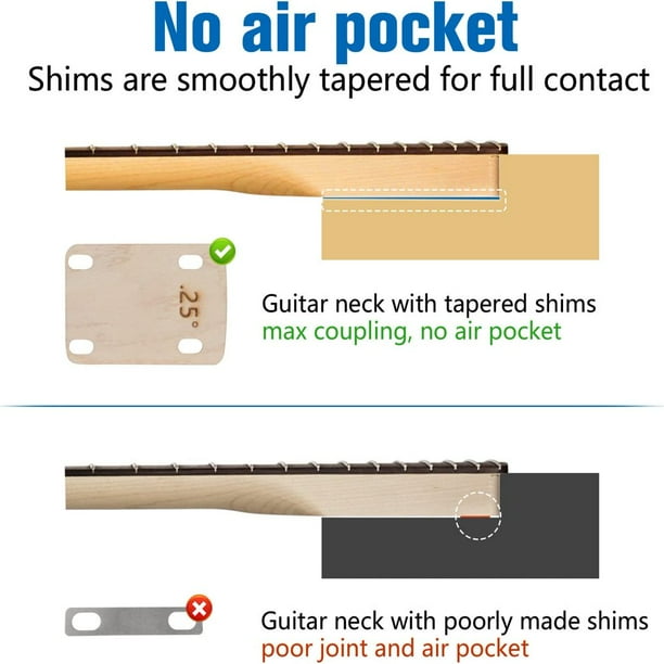 Avoir de superbes cales de guitare à portée de main facilite les réparations. HXBER Lot de 3 cales de manche de guitare portables en bois d Contenu de l'emballage: vous recevrez 3 morceaux de cales de manche de guitare, qui sont en bois d'érable solide et ont plus de résonance et de stabilité que le plastique, vous aidant à préserver le son naturel de votre guitare ou de votre basse Restauration parfaite: Nos cales de cou pour la guitare électrique sont d'excellents outils de restauration pour votre basse ou votre guitare. Notre produit peut incliner votre guitare à l'angle précis sans créer des poches d'air, empêcher l'usure ou les dommages à la base et au cou de votre instrument. Guitare Select Box érable Bois Massif 3 Select Guitariste Cadeau... Ils ont une construction très flexible qui vous permet de les couper ou de les poncer à vos besoins précis, puis de les utiliser pour protéger votre instrument des dommages lorsque l'angle est positionné de manière incorrecte. Le cône est de 0,76-0,48 mm pour une cale de 0,25 degré, 0,71-0,2 mm pour une cale de 0,5 degrés et 1,52-0,25 mm pour une cale de 1 degré. Cale Réparation Manche Cales De Manche De Guitare 3 PièCes 0,25°, 0,5° Et 1°Joint Pour Cales Manche Guitare