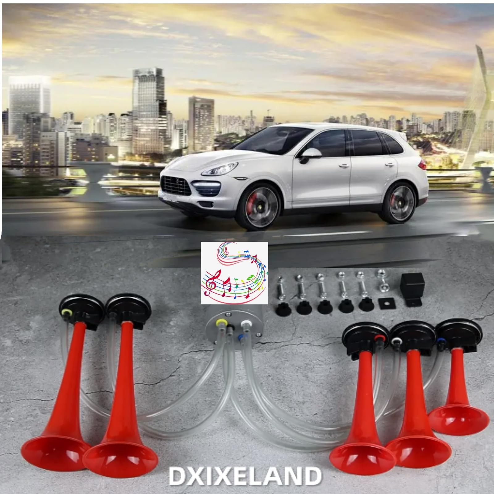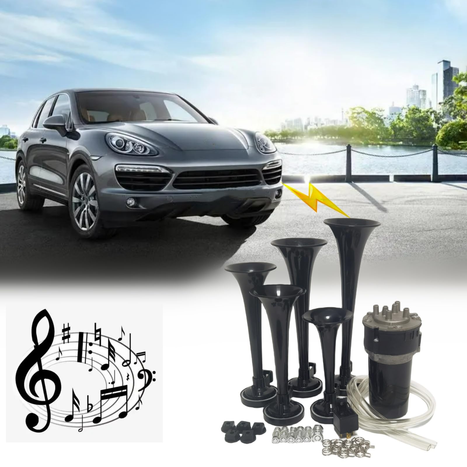 YIYIDA Klaxon de voiture Klaxon pneumatique 165DB Car Horn k Le Haut - parleur est équipé d'une puissante pompe à air 12V et les mélodies Dixie en sortie sont magnifiques. YIYIDA Klaxon de Voiture 24V 165DB Chrome Zinc Double Trompette Avec Compresseur Haut-Parleur Haut et Bas Pour Camion Train Bateau Klaxon Musical Dixie 5 Tubes YIYIDA Klaxon De Voiture à Air à Cinq Tubes 160db - Trompette Dixie 12V Avec Haut-Parleur De Pompe à Air Rouge Pour Camion, Navire, Bateau, SUV Klaxon Trompette Musicale Dixie ♥ Trompette d'air cornet d'air 12V, pompe à air, tuyau, relais, support et vis fournis. Compte tenu du prix, ce produit offre des performances élevées et un excellent rapport qualité / prix. Essayez - le maintenant! Si vous avez des questions, veuillez contacter notre service clientèle! ► Trompette musicale nouvelle mise à niveau 12V cinq tubes noir corne de voiture avec des matériaux de haute qualité pour assurer une résistance et une durabilité maximales; Le Haut - parleur peut fonctionner dans des environnements d'eau douce ou d'eau salée et convient à presque toutes les conditions météorologiques. Donnez un avertissement musical fort pour rendre la conduite plus sûre et plus agréable! Aucune source d'air supplémentaire n'est requise pour les Haut - parleurs. Ce klaxon convient à toute voiture 12V, camion, moto, bateau, etc. Le son de la trompette est fort, s'il vous plaît ne pas utiliser à proximité des écoles ou des hôpitaux. Rapport qualité - prix, rapport qualité - prix! Le Haut - parleur peut produire un son puissant jusqu'à 165 décibels, jouant des mélodies Dixie.