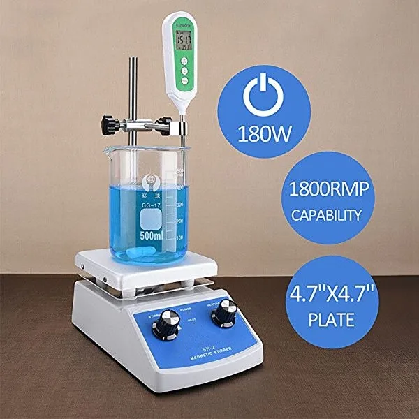 AREC 4 Agitateur magnétique avec plaque chauffante en céramique 2L capacity; 100-2000 rpm speed range; température max surface: 380 °C; rated power: 180W Mophorn Plaque Chauffante Pour Agitateur Magnétique , Max. 572 °F/300 °C, Capacité De 2 000 Ml 0 A 2000 Trmin Avec Ecran Led Comprend Un Support Et Des Barres Dagitation Puissance De Chauffage 85611154 L'agitateur à plaque chauffante a une bonne conductivité thermique et peut chauffer le liquide rapidement. Livré avec un agitateur magnétique et un support de fixation de capteur réglable, assurant un contrôle pratique et précis de la température en temps réel Garantie: Garantie limitée d'un an StonyLab; si reçu endommagé, veuillez nous contacter immédiatement; nous allons le résoudre jusqu'à ce que satisfait Electrique Plaque chauffante à température constante laboratoire à agitateur magnétique 220V l... Large choix d'agitateurs magnétiques, agitateurs chauffants Comparaison des agitateurs magnétiques Puissance de chauffage et vitesse d'agitation contrôlées par les boutons du panneau pour un fonctionnement continu Avant d'utiliser l'appareil, éteignez le bouton marche/arrêt et branchez le câble d'alimentation.
