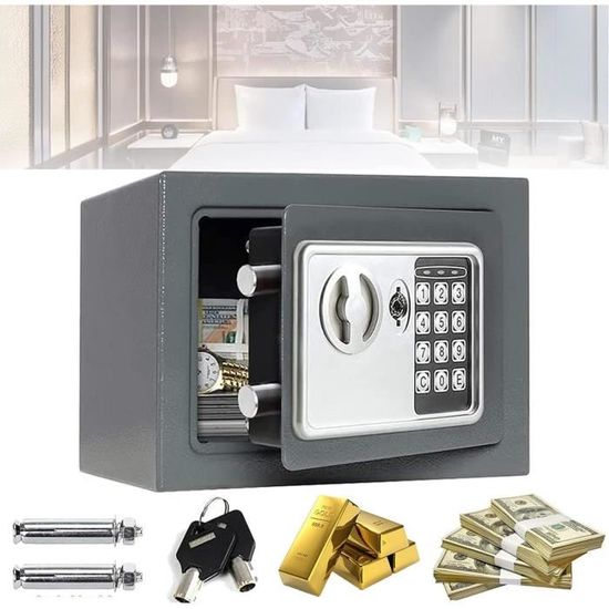 Capacité suffisante et conception pratique : coffre-fort pas cher avec une capacité de 3,8 litres, il offre suffisamment d'espace pour ranger divers objets de valeur comme des colliers, de l'argent liquide ou des documents importants, répondant pleinement aux besoins quotidiens. La construction entièrement fermée, les boulons et le matériau plus épais (1 mm + 1,7 mm), ainsi que le système de verrouillage assurent une protection optimale des objets de valeur à l'intérieur. Coffre-fort Mural 4.6L Coffre Fort, 4.6L Avec 3 Clés, Acier Q235, Mural, Noir Mini Coffre-fort Mini Coffre Leroy Merlin Coffre fort 4.6L acier (envoi gratuit) - Coffres forts pour Polyvalence d'apparence et facilité d'entretien : coffre-fort ignifuge son design classique de couleur noire s'harmonise avec la plupart des styles de décoration et thèmes de couleurs, adapté à divers scénarios d'utilisation. Cadeau idéal avec de multiples avantages : coffre-fort mural pour appartement combinant une apparence élégante, des fonctions puissantes (durabilité, sécurité, capacité), une conception bien pensée (coussin en feutre, bords lisses) et une facilité d'utilisation (installation, nettoyage), il constitue un cadeau parfait pour la famille ou les amis, aidant eux aussi à gérer leurs objets de valeur. La surface lisse et la structure simple permettent un nettoyage facile à l'aide d'un chiffon humide, lui redonnant facilement son aspect neuf. Pratique et sécurisé en termes d'accès : coffre-fort mural doté de 3 clés, il permet d'utiliser une comme clé de rechange au cas où les autres seraient perdues, garantissant un accès sécurisé en tout temps. Mini Coffre-Fort, Coffre-Fort Avec Clé Coffre-Fort Durable Avec Serrure... De plus, les trous pré-percés et les vis fournies facilitent son installation au mur, rendant le coffre difficile à retirer pour une sécurité accrue. Sa grande capacité vous permet de stocker de nombreux objets de valeur. Excellente durabilité et sécurité : coffre-fort à clé fabriqué en acier Q235 de haute qualité soumis à des processus de pliage, soudage et pulvérisation, il est résistant aux chocs, à la rouille, à l'usure et difficile à déformer.