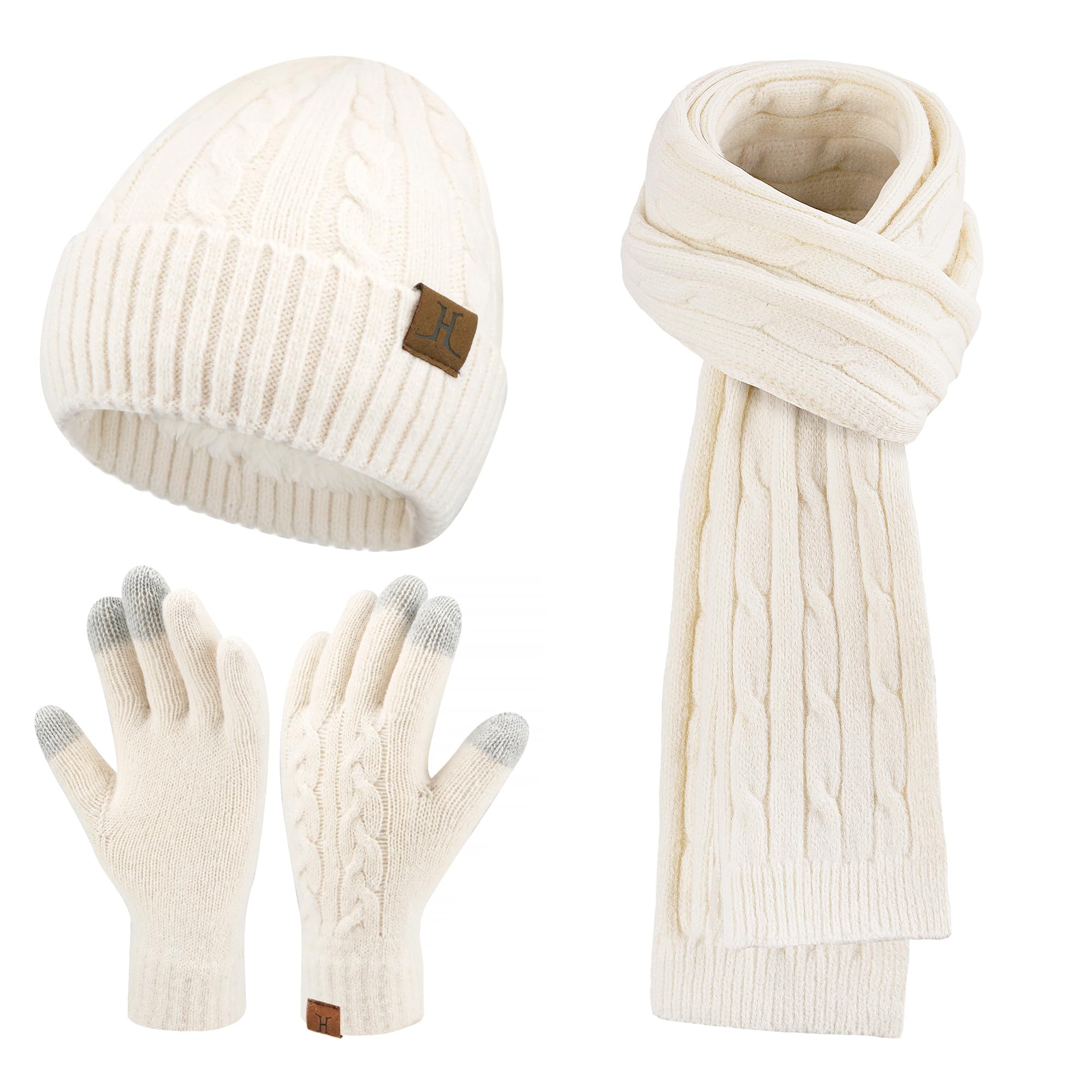 Taille : chapeau : 22,5 × 24 cm (8,86 × 9,45 pouces); Gants : longueur totale : 21 cm (8,27 pouces), largeur de la paume : 8,5 cm (3,35 pouces) ; écharpe : 200 cm × 25 cm (78,74 × 9,84 pouces). Nos chapeaux d'hiver pour femmes sont dotés d'un pompon super doux, vous rendant plus vivante et mignonne dans l'hiver terne, ajoutant une touche girly. Sensibilité tactile : la partie avant du pouce, de l'index et du majeur peut toucher l'écran, fonctionne parfaitement sur les appareils électroniques et garde les mains au chaud pendant leur utilisation. Par temps froid, vous pouvez utiliser une variété d'appareils électroniques tels que téléphone portable, tablette et écran de voiture sans retirer ces gants pour femme, ce qui est à la fois chaud et pratique. Aspect doux et élégant, un incontournable pour l'hiver. generisch Ensemble bonnet, écharpe et gants pour femme, bonnet d'hiver avec pompon doublé en polaire, gants tactiles, écharpe, bonnet pour femme 3 en 1, Beige., taille unique Vous pouvez l'utiliser seul ou en combinaison et il est adapté pour la marche, la course, le vélo, la conduite, le camping, les voyages et autres sports de plein air. Vous pouvez le porter gracieusement en un seul cercle, ou l'enrouler en quelques cercles ou faire un nœud pour créer facilement un style et une mode personnels, parfait pour s'assortir à divers vêtements d'hiver. Bonnet d'hiver épais doublé en polaire avec pompon en fausse fourrure... Bonnet Femme Hiver Femme Hiver Bonnet Pompon Chapeau Tricot à Carreaux Tricot Chaud Polaire Doublé, Bonnet En Tricot Avec Confortable Doublure Polaire Amovible En Fausse Fourrure Et Pompon, Casquette Cadeaux Pour Femmes Largement utilisé : les chapeaux et gants ZASFOU pour femmes sont très adaptés pour la marche, la course, la promenade des chiens, le shopping, les voyages, les pique-niques, le camping, l'école, le bureau et d'autres activités quotidiennes intérieures et extérieures. Doublure chaude : nos bonnets présentent un design en tricot torsadé à l'extérieur et une doublure intérieure en polaire thermique qui gardera votre tête confortable et au chaud tout au long de l'hiver froid. Bonnet tricot uni beige strass doublé avec pompon Herman Écharpe extensible : 2 m de long, qui peut être facilement portée de plusieurs façons. Matériaux de qualité supérieure: notre ensemble bonnet et écharpe pour femme est fabriqué en tissu chenille de haute qualité, doux, délicat, confortable, doux pour la peau, coupe-vent et ajusté mais pas serré. Le design délicat du crochet torsadé est rafraîchissant. Cadeaux uniques pour maman, elle, épouse, grand-mère, sœur et amie pour un anniversaire, un anniversaire de mariage, Thanksgiving, Halloween, Noël et le Nouvel An.