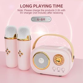 Son design compact inclut un jack pour casque (pratique privée) et est parfait pour les juguets voyageurs. Cadeau Parfait pour Enfants & Lien Familial] Cette enceinte Bluetooth vintage et machine karaoké est un cadeau parfait pour les amoureux de musique et les enfants de 3-12 ans. Avec un emballage exquis, c'est idéal pour Noël, anniversaires, activités familiales et autres fêtes Il évite les distorsions lors des chants d'enfants, offrant une audio cristalline en haute fidélité, idéale pour les karaokés familiaux. Plus de stress sur l'autonomie : il garantit une fête ininterrompue pour les petites filles. Il inspire confiance et créativité, figurant en tête des recherches de juguets créatifs pour enfants et micro pour ado. Emballé dans une boîte cadeau exquise avec carte de voeux DIY, c'est le cadeau préféré pour filles de 3-15 ans. Parfait pour les jeux en famille et les soirées d'enfants. Microphone sans fil Bluetooth 4 en 1 karaoké avec lumières LED 【Design portable & autonomie longue durée】Equipé d'une batterie rechargeable de 8-10 heures, ce micro sans fil portable supporte une utilisation prolongée en extérieur ou en voiture. Conçu pour les enfants et les familles, il propose une expérience sonore immersive, clé dans les recherches de micro hi-fi pour enfants. Idéal pour les parents cherchant un micro bluetooth facile d'utilisation. Micro enfant de karaoké sans fil Bluetooth de style moderne • Enfant World Cadeau Fille 6 Ans Avaxtt Micro Enfant Sans Fil Bluetooth - 5 Effets Vocaux, Lumières LED Microphone Enfant Bluetooth Il accepte cartes TF, USB et AUX, est compatible Android, iPad, tablettes, voitures et lit la musique de Spotify, YouTube ou Apple Music.