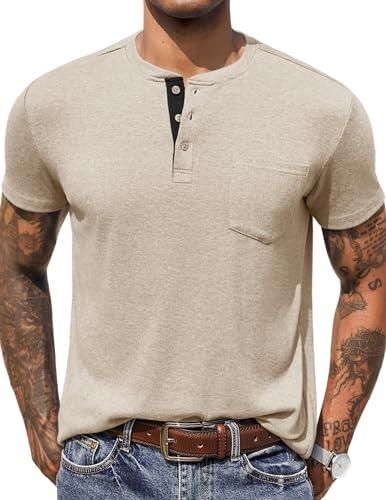 Vêtement Décontracté Homme T-shirt Henley COOFANDY Homme été - Manches Courtes Uni Avec Boutons Et Poche - Basique Et Confortable T-shirt Basique Boutons Poche Décontracté Chemise Henley Homme Homme Chemise Henley Shirt Chemise à Manches Longues Plein Henley Plein Air Vacances Manche Henley Manche Courte Homme