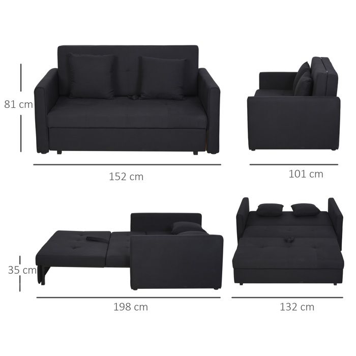 CANAPÉ CONVERTIBLE : Vous pouvez l'utiliser comme un canapé 2 places pendant la journée et comme un canapé-lit pour recevoir des invités à dormir. Surtout ceux qui s'adaptent aux petits espaces. Ce canapé-lit convertible de HOMCOM est une excellente solution dans ces cas-là ou si vous cherchez un espace où vos invités peuvent dormir. Nécessite un assemblage. SPÉCIFICATIONS : Dimensions canapé : 152l x 101P x 81H cm. Studio HOMCOM Canapé Convertible 2 Places Canapé Lit Design Scandinave Inclinaison Dossier Réglable 2 Meuble Petit Espace RANGEMENT INTÉGRÉ : Sous l'assise de ce canapé convertible se trouve un compartiment de rangement. Dimensions en format lit : 132l x 198P x 35H cm. coussin : 40l x 40P cm (épaisseur : 12,5 cm)● Charge max. STRUCTURE EN BOIS SOLIDE : La structure en bois d'eucalyptus massif, MDF et métal de ce canapé convertible 2 places offre un support solide et stable pendant que vous vous détendez en regardant la télévision ou en dormant. Canapé 2 Places Convertible Hom Com Style moderne - Kit-M Descriptions Longues:Nous aimons tous les meubles pour la maison qui ont une double fonction. 833-728CG● Note: Si vous souhaitez la reprise de votre ancien produit, merci de consulter nos CGV sur les modalités de reprise et de nous joindre via la messagerie. CONFORT MAXIMUM : Le canapé-lit 2 places, revêtu d'un agréable tissu en coton et d'une assise épaisse (10 cm), offre un confort exceptionnel, pour vous reposer et vous détendre pendant votre temps libre. assise : 132l x 67P x 35H cm● Épaisseur coussin d'assise : 10 cm● Largeur dossier : 132 cm● Dim. Canapé-lit Convertible 2 places | Confort Chic | Livré & Installé HOMCOM Canapé 2 Places Design scandinave dim. 141L x 70l x 78H cm Pieds Bois Massif Tissu Lin Ce canapé est idéal pour les petites pièces.