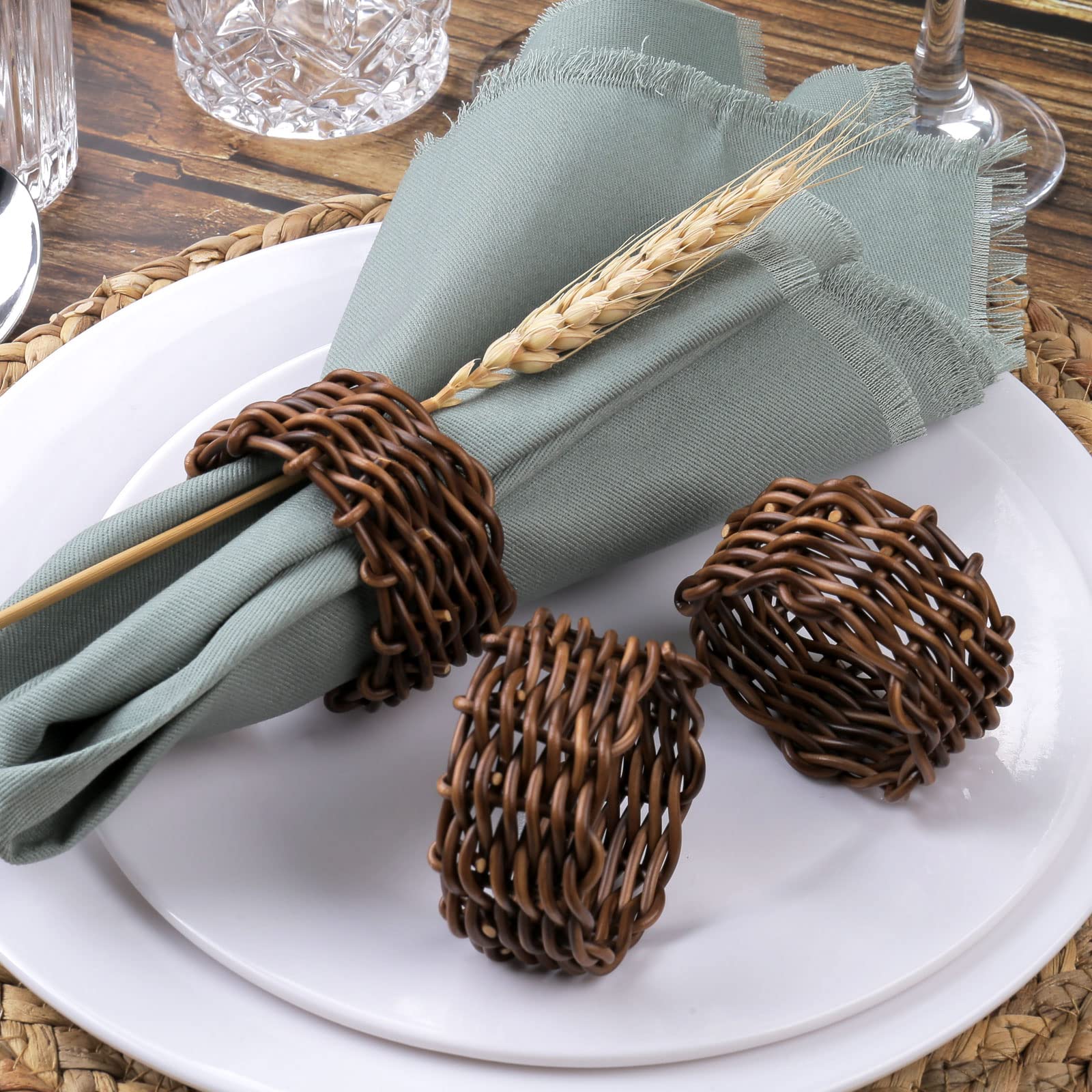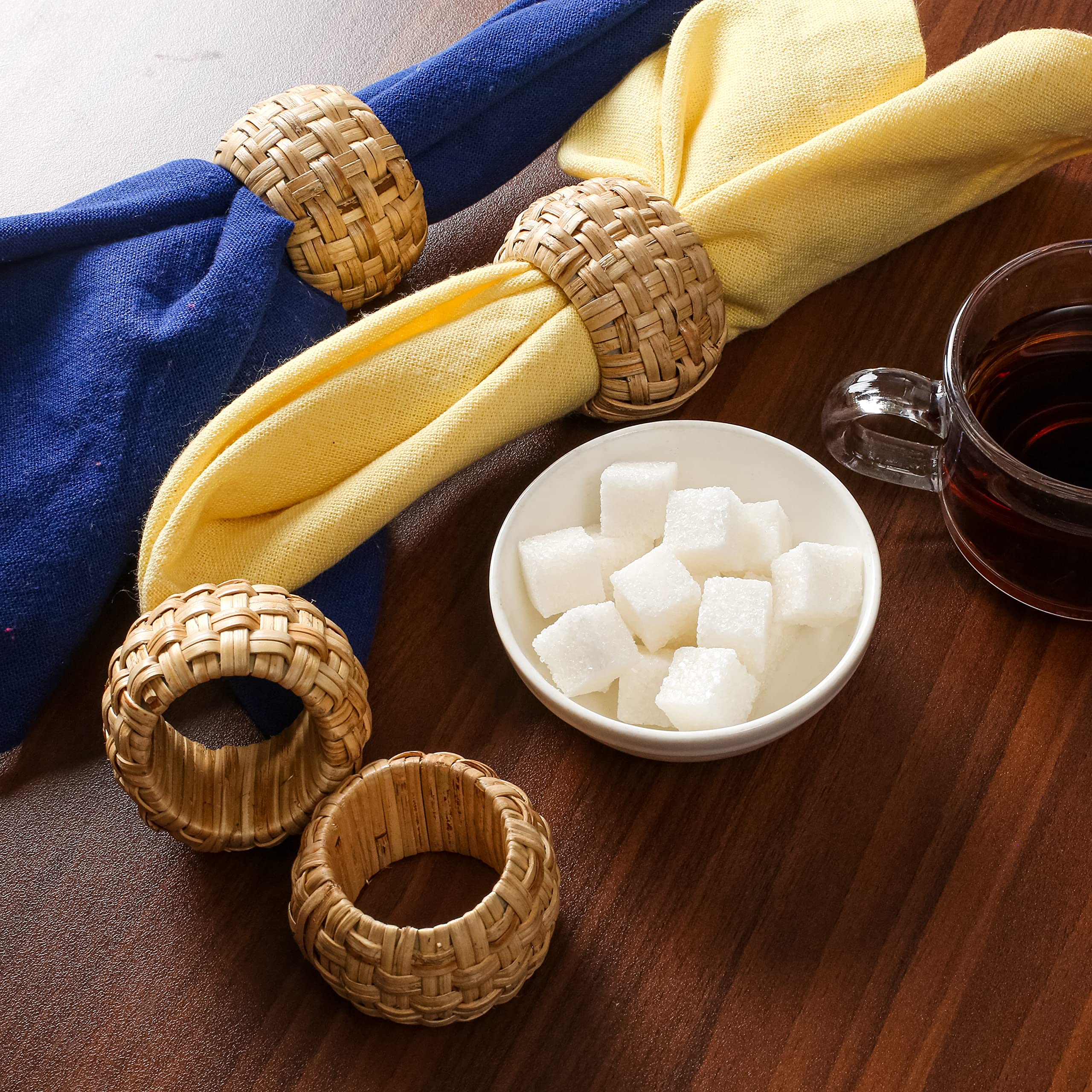 Ces nuances ne sont pas des défauts, mais un témoignage de l'artisanat authentique. Méticuleusement façonné par des artisans qualifiés à partir de canne de rotin de qualité supérieure, chaque anneau révèle une résilience inhérente et des motifs de grain uniques – transformant la vaisselle fonctionnelle en pièces d'art naturel qui commencent à démarrer la conversation. Fabriquées à partir de rotin renouvelable, ces bagues sont une alternative écologique aux options produites en série. Conçu pour une utilisation durable - Facile à nettoyer. Choisissez un décor qui prend soin de la planète. Ronds de serviette - Rustiques - Lot de 6 - Design bohème - Feuilles vertes - Durable - Maison De légères variations de tissage mettent en valeur l'art authentique, rendant chaque bague distincte. Style sans effort pour chaque table : rehaussez instantanément les dîners de famille quotidiens ou les tables de célébration spéciales. Blanc Mariclo Lot de 4 porte-ronds de serviette en rotin ∅ 5 cm... Anneau Serviette Rotin Lot De 6 Ronds De Serviette En Rotin Naturel Fait à La Main - Avec Décoration Table éco-responsable Remarque sur l'artisanat : Comme chaque bague est fabriquée individuellement à la main, vous remarquerez peut-être de légères variations charmantes dans le motif ou la texture du tissage. Cette touche artisanale apporte une chaleur rustique authentique et une texture organique à votre table, créant une atmosphère accueillante pour toutes les occasions – des petits déjeuners familiaux détendus aux réunions festives mémorables. Ronds de serviette en rotin, par 4. - Déco Nord Sud Que vous mettiez une table décontractée en semaine ou que vous organisiez un beau paysage de table pour les invités, ces bagues ajoutent instantanément une touche de sophistication discrète. L'éclairage naturel peut également causer de légères variations dans la façon dont la couleur apparaît sur les photos par rapport à la couleur en personne. Améliorez vos moments de repas avec la chaleur biologique durable de nos ronds de serviette en rotin naturel. Un choix respectueux de l'environnement pour un divertissement élégant et durable.