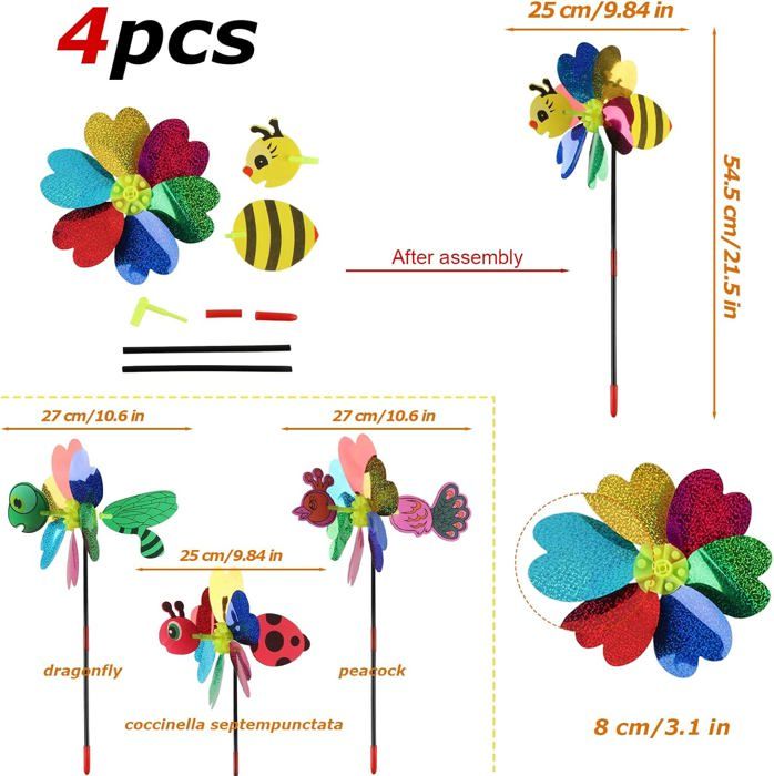 Fonction Répulsive pour les Oiseaux: Moulin à vent peut repousser les oiseaux de manière intelligente et efficace grâce à la rotation du vent et à la réflexion de la lumière, protégeant ainsi votre cour et votre pelouse sans avoir besoin d'utiliser d'autres moyens pour s'assurer que votre espace extérieur est exempt d'interférences avec les oiseaux Nom du Produit: Moulin à VentCaractéristiques du Produit: 1., Moulin à vent coloré de 30 cm qui brille de façon dynamique au soleil et crée un effet de lumière fantastique lorsqu'il tourne dans le vent2., Le flux du vent et la réflexion de la lumière peuvent repousser efficacement les oiseaux et protéger le jardin et la pelouse3., Matière plastique et fibre de verre de haute qualité, imperméable, résistante au vieillissement et inaltérable, garantissant un fonctionnement stable4., Facile à installer, flexible, la pointe peut être facilement insérée dans les pots de fleurs, la pelouse ou le balconInformations sur le Produit: 1., Matériau: Plastique, Fibre de Verre2., Couleur: ColoréeContenu du Colis: 4 × 8 Pales de Moulin à Vent8 × Tige4 × Pièces de Connexion4 × Pièces à Plier4 × Embout4 × BornesServices: Merci pour votre soutien, si vous avez des questions ou des suggestions sur le produit, veuillez nous contacter par e-mail, après avoir reçu l'e-mail, nous vous répondrons dans les 24 heures Qualité Supérieure: Moulin a vent jardin est fabriqué en plastique de haute qualité avec des poteaux en fibre de verre, ce qui est durable, imperméable et n'est pas facile à casser, à vieillir et à se décolorer, ce qui garantit que le moulin à vent fonctionne de manière stable sous une pluie battante et dans d'autres conditions météorologiques Moulin À Vent Rotatif À Vent En Métal Moulin A Vent Jardin Exterieur, Wind Spinner Pour La Large Éventail D'utilisations: La hauteur totale de moulin à vent réfléchissant est de 71cm, à la fois belle et pratique, elle peut non seulement être utilisée comme décoration de jardin, de pelouse, grâce à sa couleur unique et à sa brillance, mais aussi comme cadeau attentionné pour la famille et les amis Un moulin à vent pour le jardin | Bois Le Bouvet Moulins à Vent Jardin Moulin à Vent Pour Cour, Moulin à Vent D'Extérieur En Alliage De Fer Avec Grandes Roues Pour Décoration Extérieure Paillettes 30cm Répulsif Oiseaux Ahlsen Moulin à Vent Réfléchissant, 10 Pièces Anti-Oiseaux Moulin À...