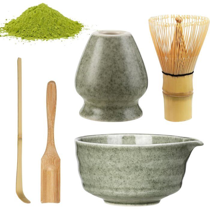 7 Pièces Matcha Kit Ceremonie Japonais, Fouet Matcha En Bambou