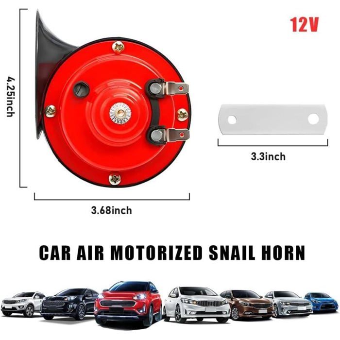 Aluminium chromé de qualité supérieure et meilleure coque ABS, antichoc et durable. EN STOCK : Jeffergarden 12V double tonalité trompette Super fort électrique Air klaxon escargot pompe électrique sirène voiture moto, QC00980 pas cher. Livraison rapide partout en France Sirène de pompe électrique d'escargot super bruyante de trompette d'air de voiture 12V de Tiardey pour n'importe quel bus de moto de bateau de SUV de camion de camion de voitureCaractéristiques?:Applicable à la plupart des voitures, yachts, bateaux, SUV, vélos 12V ,camions,bus, véhicules et motos. Puissant : équipé d'une nouvelle génération de moteur de pompe à air, la tension est plus stable. Applicable à la plupart des voitures, yachts, navires, VUS, vélos, camions, bus, véhicules et motos 12V., Service Clients. Le klaxon à air adopte une conception d'intégration, ne nécessite aucun tuyau et s'installe en quelques minutes en transférant simplement les fils du klaxon d'usine au compresseur. Si vous avez d'autres questions, veuillez contacter notre service client. Ashata klaxon d'air double Klaxon d'air de camion 12 V 130 dB double Conception en forme d'escargot, design rouge élégant, nouveauté et belle apparence. Veuillez ne pas l'utiliser à proximité des écoles ou des h?pitaux. Aucun tube requis, son double ton haut et bas, structure d'escargot cyclone double son haute basse, plus agréable et fort, son fort et clair peut atteindre 135?DB. Klaxon à Air Rouge Compacte pour Voiture, Pompe Électrique, Sirène... Hornes Auto À Double Tonaux À Double Tonalité Corne Descargot Électrique Pour Véhicule Compatibilité Universelle, Construction Durable, Idéal Pour Les Voitures, Les Camions Et Les Motos Du 7,17 € | DHgate Forme d'escargot design, design rouge élégant, nouveauté et belle apparence.