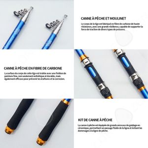 Diamètre de la partie inférieure : 17,3 mm. Canne à pêche pour enfants, Kit Combo de canne à p... – Grandado Caractéristiques : Matériau : fibre de verre. Il est conçu pour résister à l'usure d'une utilisation régulière, performance durable. 【Utilisation】Convient pour les enfants et les adultes, cette canne à pêche est parfaite pour diverses situations de pêche. Pêche Pour Débutants Léger 105g Power Canne À Pêche Télescopique 168 Cm Poids 1-5 G Pour Enfants Canne Télescopique 8 Mètres Couleur : bleu, pour rose., Quantité : 1 pièce., Longueur : 300 cm., Poids : 105 g. Légère et portable : avec une longueur fermée de 41 cm et un poids de seulement 105 g, cette canne à pêche est légère et facile à transporter. Plusieurs options de couleur : disponible en bleu et en rose, vous pouvez choisir la couleur qui convient à votre style ou préférence. *Nom du produit : canne à pêche. Que vous pêchiez en eau douce ou en eau salée, cette canne fournit la puissance et le contrôle dont vous avez besoin pour attraper différents types de poissons. Il peut être étendu jusqu'à 300 cm de long, vous offrant une large portée pour vos besoins de pêche. Canne Télescopique Enfant Kit Canne à Pêche Enfant LEOFISHING - Canne Télescopique, Moulinet, Filet Et Seau - Idée Cadeau Ensembles Cannes Et Moulinets De Pêche