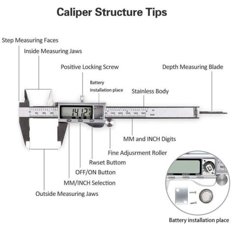 Pied à Coulisse Numérique 150 Mm Pied à Coulisse Digital Conversion Po/mm Fonction Remise A Zero Grand Ecran Lcd 4 Modes De Mesure Acier Inoxydable Ip54 Etanche Pour Mesure Precision Bricolage P 010814746006 Pied à coulisse numérique Toolpack - 0-150mm Jauge d'épaisseur de cadran numérique électron... – Grandado Preciva Pied à coulisse numérique, 0-150 mm, jauge de mesure avec écran LCD, type C, rechargeable, outils de mesure (noir avec orange) Pied à coulisse numérique Preciva - En acier inoxydable