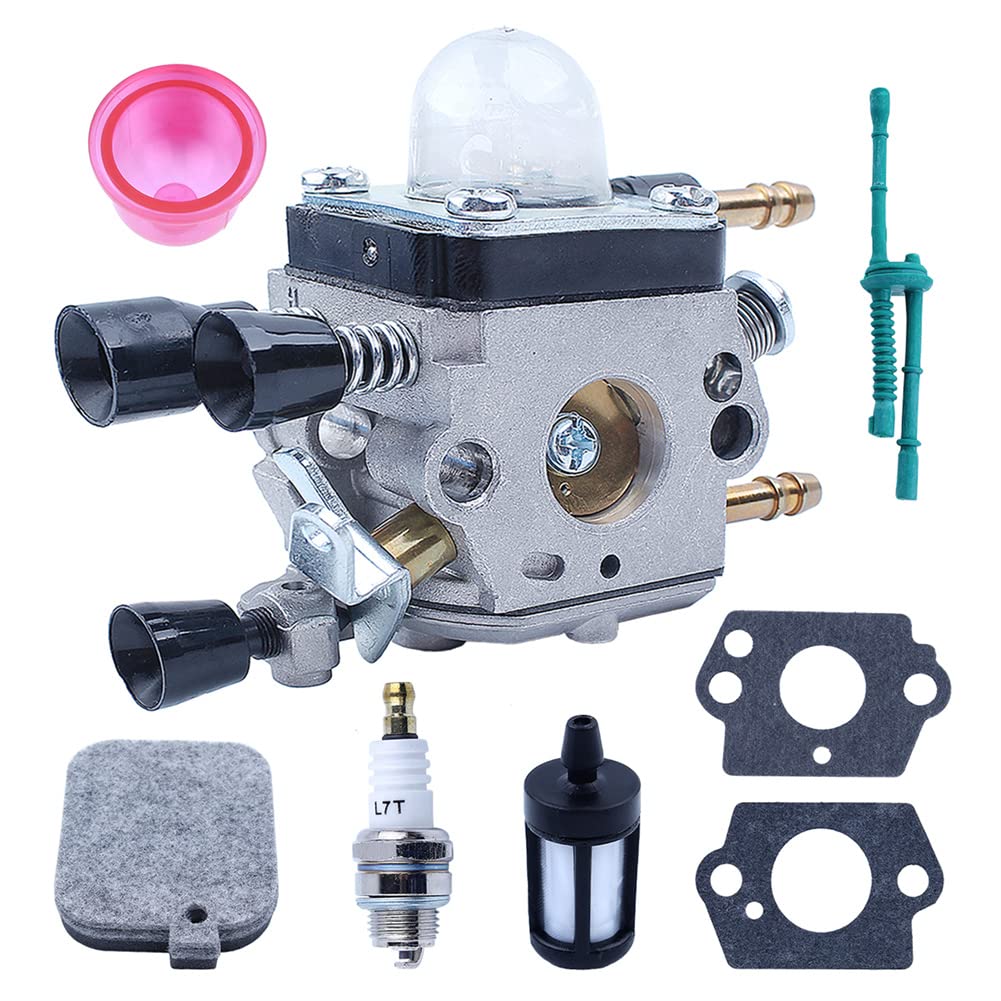 Contenu de l'emballage : 1 kit de carburateur. Caractéristiques : * Nom du produit : kit de carburateur., *Matériau : métal. Petits prix et livraison gratuite dès 25 euros d'achat sur les produits Sumsoctober. Commandez Kit carburateur pour souffleur à feuilles SH86 SH86C BG86 BG86CE avec filtre à air, joint d'étanchéité pour conduite de carburant, deux ampoules et joints de rechange ZJCHAO Kit de carburateur Carburateur de ventilateur à essence avec... [Compatible avec plusieurs modèles] Ce kit de carburateur est spécialement conçu pour les souffleurs de feuilles SH86, SH86C, BG86, BG86CE, BG86Z et BG86CEZ, compatibilité parfaite et performance optimale dans vos tâches de jardinage. Kit d'entretien de carburateur pour souffleurs de feuilles s Pièce de rechange fiable : remplace efficacement les pièces 4241 120 0606, 4241 120 0607, 4241 120 0616 et 4241 120 0623 pour un fonctionnement fiable de votre souffleur à feuilles. Efficacité du carburant améliorée : conçu pour une meilleure efficacité du carburant et des performances, ce carburateur aide votre souffleur à feuilles à fonctionner au mieux tout en économisant sur les coûts de carburant. Kit Carburateur Complet Stihl SH86 BG86 Filtre à Air Joints Kit De Carburateur De Rechange Compatible Avec Les Modèles SH86 SH86C Filtre à Air Et Durite Souffleur Taille : comme sur l'image., Couleur : voir photo. * Assurance de remplacement : il remplace efficacement les numéros de pièces 4241 120 0606, 4241 120 0607, 4241 120 0616 et 4241 120 0623, ce qui en fait un choix fiable pour vos besoins d'entretien. * Installation facile : le design simple permet une installation facile, permettant aux utilisateurs de remplacer rapidement les pièces sans assistance professionnelle, ce qui permet d'économiser du temps et des efforts.