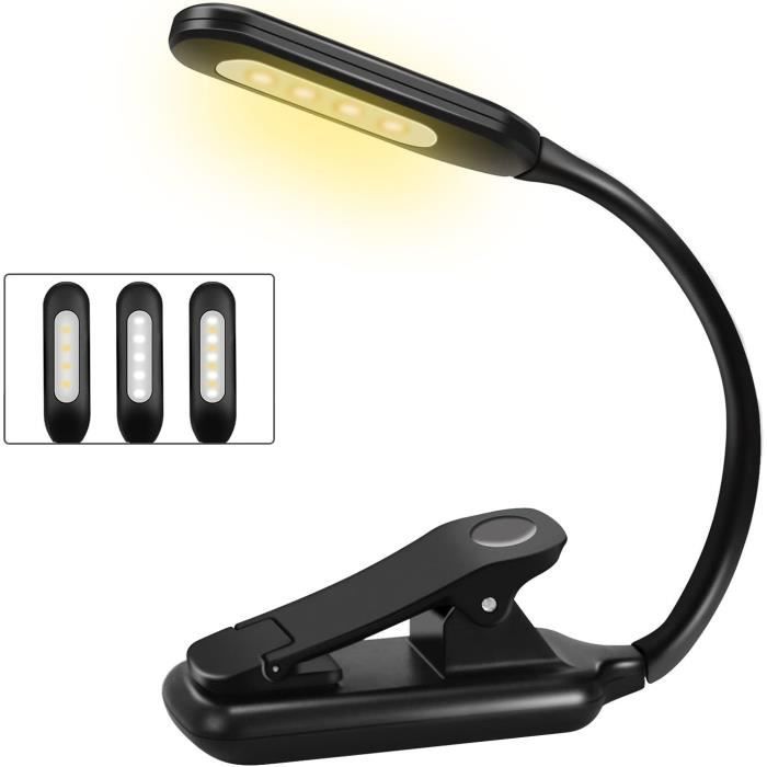 Lampe de lecture à pince rechargeable - USB - ON RANGE TOUT Sa polyvalence garantit un fonctionnement optimal sur toutes les surfaces, tout en étant adaptée . éclairage Ajustable 6 Niveaux Alyvisun Luière De Lecture, 3 Odes De Couleur ≈ 5 Niveaux De Luinosité Réglables, [Fonction Lampe De Lecture Enfant Cette lampe de lecture est une solution idéale pour divers environnements, y compris les tables de chevet et les chambres d'étudiants. Réduit la fatigue oculaire pendant la lecture ou dans les espaces peu éclairés. Fonction minuterie: La minuterie d'arrêt automatique intégrée de 45 minutes assure une protection oculaire optimale tout en favorisant des pratiques de lecture plus saines en limitant l'utilisation continue de la lampe de lecture. Lampe de lecture spécialisée : Éclairage doux grand angle et tête ajustable créent une lueur ambiante agréable. Adaptable à les angles de lecture pour minimiser... Lampe de lecture rechargeable cou Lodgia - Nos lampes de lecture Son design compact offre six nivede luminosité réglables, répondant à vos besoins que ce soit sur une table de bricolage ou dans une bibliothèque. Attributs du produitNom: Livre lumineux pour lire la nuitCapacité de la batterie: 200mAhTemps de charge: 2/3 heuresTemps de décharge: 4/10 heuresSource lumineuse: LEDTempérature de couleur: 4000KPoids: 60gTaille du produit: environ 3,5x1,8x11., 2cm / 1., 38x0., 71x4., 41 poucesMatériel: AbsCouleur: noir, blancTension: 5vPower: 5W (4 x 0,5W / module LED)Courant: 1AType de batterie: batterie en polymèreListe des produits: 1 * Livre les lumières pour lire la nuit1 * Câble de chargeNotes: 1., En raison des effets d'éclairage et des angles de photographie, le produit a une différence de couleur; Veuillez comprendre., 2., En raison de la mesure manuelle, il y a une tolérance dans la taille du produit. Rechargeable et portable, elle convient parfaitement pour les voyages ou pour s'entraîner au piano.