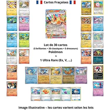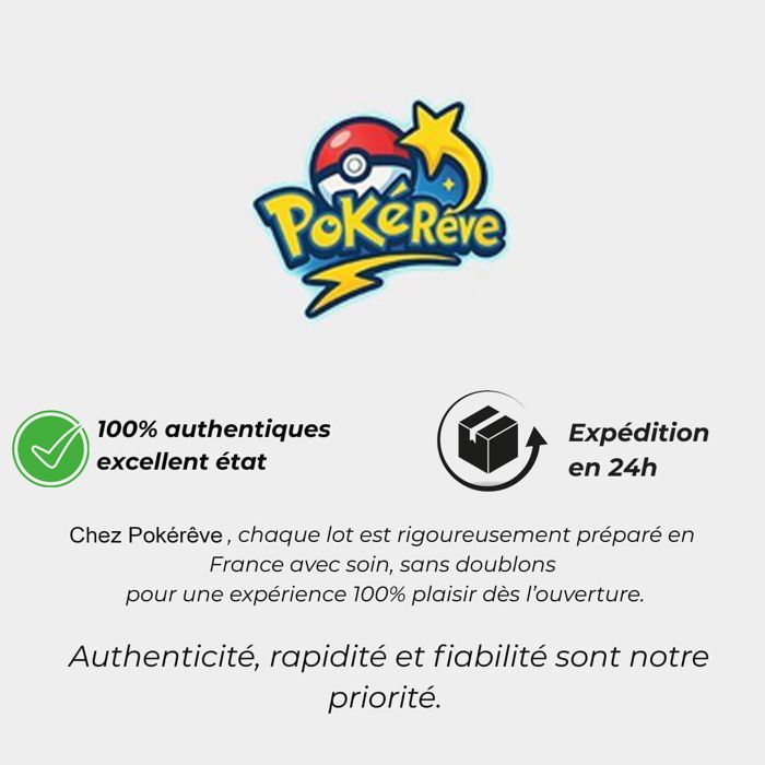 Consultez nos annonces de carte pokemon rare d'occasion. Trouvez toutes nos annonces de Collection sur Avertissement De Sûreté Attention : Ne convient pas aux enfants de moins de 72 mois. Cartes Pokémon Authentiques LOT DE 11 Cartes Ultra Rare EX Dracaufeu Pokémon 151 Neuf En Français EUR 20,00 - FR Cartes Brillantes Holographiques Françaises Description du produit Découvrez nos lots spécialement conçus pour les collectionneurs et passionnés. 5 cartes brillantes (Holographique et/ou Reverse) qui captivent par leurs reflets et leur rareté. 20 cartes classiques et 5 cartes Dresseur pour construire une équipe complète. About This Product. This is a lot of 30 used Pokemon Trading Card Game cards, and the seller guarantees that every single one is an Ultra Rare card LOT 9 CARTES Pokémon Prime EX Ultra Rare Dracaufeu - FR EUR 31,90 - FR ) Des cartes brillantes Holo et Reverse pour enrichir la collection Des cartes classiques pour compléter vos decks Des cartes Dresseurs pour renforcer vos stratégies de jeu Pourquoi choisir nos lots : Cartes 100 % authentiques Chaque lot est parfait pour un cadeau (anniversaire, Noël, fête, surprise pour un enfant ou un collectionneur) Cartes emballées avec soin dans du papier bulle, assurant une protection optimale lors du transport Un choix idéal pour jouer, collectionner ou offrir Offrez un lot unique, prêt à surprendre et à faire plaisir à tous les fans de l’univers Pokémon. 1 carte ultra rare (Ex, V, Ar, Tg, Gg, ., ., ., ) garantie pour un effet surprise à chaque ouverture. Chaque lot est composé de cartes authentiques, soigneusement sélectionnées et protégées pour garantir une expérience unique.