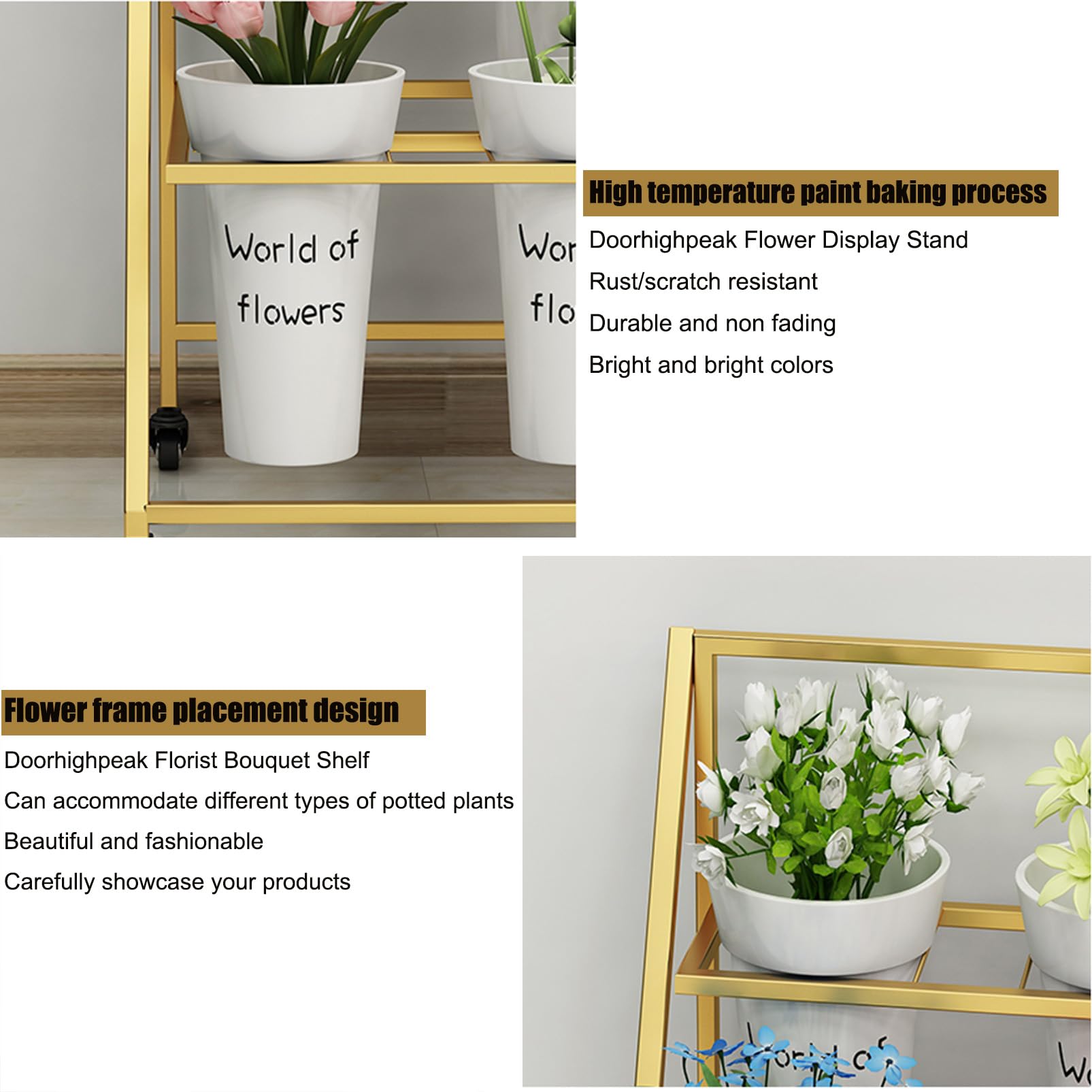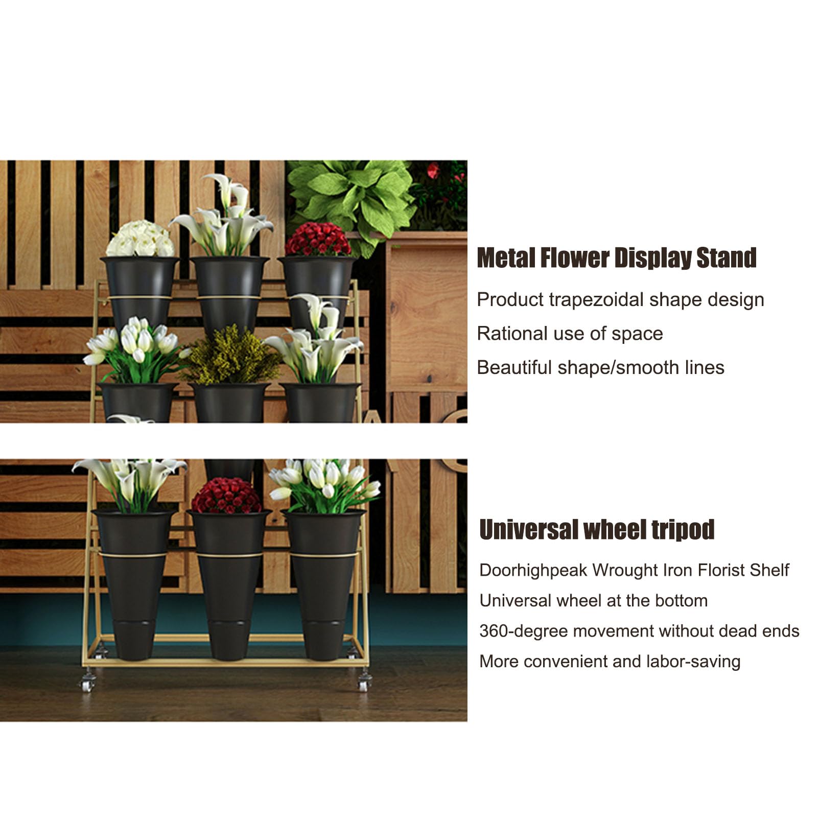 【Grande capacité】: Ce présentoir à fleurs à trois niveaux peut accueillir 6 à 9 bacs à fleurs, permettant ainsi de présenter une grande variété de fleurs fraîches ou de créer des compositions florales lors de grands événements. 【Présentation idéale des fleurs】: Ce support à fleurs en métal offre un grand espace de rangement. Support De Jumeaux Près Du Lac Avec Des Seaux Image stock - Image du capuchons, jupes: 54905725 EN STOCK : Étagère support fleurs sur roulettes pas cher. Grand choix, promos permanentes et livraison rapide partout en France. Paiement sécurisé Dimensions du présentoir : 48 x 50 x 96 cm / 70 x 50 x 105 cm. Un beau bouquet de fleurs avec une étagère au-dessus · Creative Fabrica 【Support à fleurs multifonctionnel】: ce support de pot de fleurs est idéal pour le salon, la chambre, un coin, le jardin, la terrasse, la cour, etc. De plus, ce support de fleurs en fer est un cadeau idéal pour les amateurs de jardinage, les amis et les voisins. Chariot Fleuriste Présentoir De Fleurs, étagère En Métal Avec Roulettes, étagère Mobile Pour Bouquet De Fleuriste, Chariot De Plantes D'intérieur Ou D'extérieur étagère à Fleurs Mobile Ses courbes douces créent une structure métallique multicouche pour une ambiance chaleureuse. La surface du cadre en fer est traitée antirouille pour une protection optimale de vos fleurs. Chaque plante bénéficie également de suffisamment de lumière pour sa croissance.