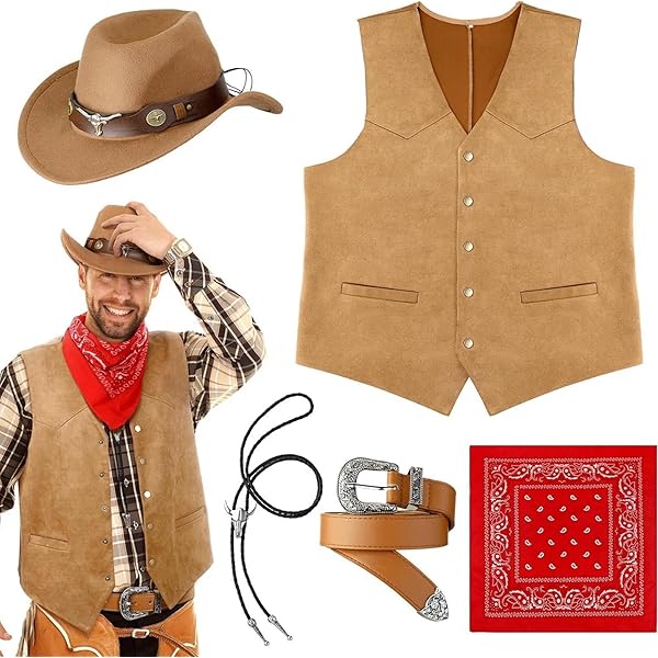 C’est un style raffiné et original qui vous fera sortir du lot. Déguisement cowboy adulte - Fiesta Republic Ce déguisement cowboy adulte pas cher comprend tout le nécessaire pour un look authentique de cowboy : une chemise, un pantalon avec ceinture, et une veste avec franges Le bandana est doux au toucher et confortable sur la peau, tandis que la ceinture en simili cuir avec boucle apporte une touche d’authenticité et se règle facilement. Veuillez consulter attentivement le guide des tailles avant l'achat. Accessoires de Costume Cowboy Western : vous recevrez un ensemble complet de costume de cowboy western pour homme, comprenant 1 chapeau de cowboy, 1 gilet long à franges, 1 bandana paisley et 1 ceinture avec boucle — soit un total de 4 pièces. Le chapeau est léger et agréable à porter, le gilet à franges s'ajuste bien sans gêner les mouvements. Il peut également être utilisé pour des jeux de rôle, des spectacles sur scène ou encore des voyages décontractés Ce costume comprend un gilet à franges, un chapeau de cowboy à large bord, un bandana paisley et une ceinture à boucle avec motif taureau. Bandana Homme MALLOOM 4 Pièces Ensemble De Déguisement Cowboy Pour Homme Costume Cowboy Adulte Le gilet à franges est en faux daim, doux, respirant et confortable à porter. Gilet cowboy homme sheriff - Magie du Déguisement - Magasin de fêtes Convient à la Plupart des Hommes : le gilet western est en taille unique convenant à la majorité des hommes adultes. Occasions Adaptées : ce costume cowboy pour homme est parfait pour diverses occasions telles que les fêtes à thème western, les enterrements de vie de garçon, les réunions de famille, le cosplay d’Halloween, les anniversaires et autres célébrations. Confortable et Résistant Fabriqué à partir de matériaux de haute qualité, ce costume est conçu pour offrir confort et durabilité. La boucle de ceinture est en alliage de haute qualité avec une gravure de taureau, offrant un aspect raffiné et élégant. Le coloris noir classique permet aussi de les combiner facilement avec d’autres vêtements et accessoires pour créer différents looks western Design Polyvalent et Stylé : cet ensemble d'accessoires western cowboy vous offre une tenue parfaitement assortie, mettant en valeur votre charme sauvage dès que vous l’enfilez. Le chapeau de cowboy est doté d'une sangle réglable pour un ajustement parfait, ni trop serré, ni trop lâche. Idéal pour les enterrements de vie de garçon, les fêtes d'anniversaire à thème western, Halloween, le cosplay et d'autres événements à thème.