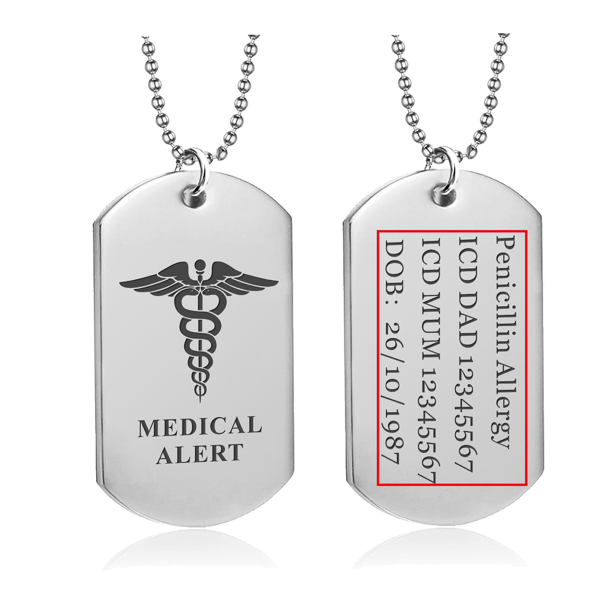 Ce collier est dans un style cool, le design est agréable et unique, va bien avec tous les autres accessoires, montrez votre personnalité à chaque instant. Ce collier est au design simple, élégant pour toutes les occasions, parfait pour les hommes et les femmes. Petits prix et livraison gratuite dès 25 euros d'achat sur les produits HCMA. Commandez HCMA Nouveau Or Argent Couleur Gravure Colliers d'alerte médicale pour Femmes Hommes Titane Acier Chien étiquette pendentifs Collier Collier d'alerte médicale en acier titane avec gravure couleur or et argent pour homme et femme : : ModeStyle : tendance, punk, hip-hop. Ce collier a un design simple, élégant pour toutes les occasions, parfait pour les hommes et les femmes. Convient pour les t-shirts, jeans, costumes, pulls, manteaux, etc. Ce collier est dans un style cool, le design est agréable et unique, va... Emballé dans une belle boîte cadeau, excellent cadeau pour votre mari, petit ami ou ami masculin pour un anniversaire, un anniversaire, Noël, Thanksgiving, la Saint-Valentin, une fête, un bal ou d'autres occasions de cadeaux. Bracelets et colliers d'identification médicale en Or 14K | Bijoux Ce collier est solide et fiable, le complément parfait à votre tenue. Nous vous répondrons dans les 24 heures. Bijou Médical Personnalisé Nouveau Or Argent Couleur Gravure Alerte Médicale ID Colliers Collier Homme Punk Convient pour un t-shirt, un jean, un costume, un pull, un manteau, etc. Type de collier : Colliers pendentifs Matériau : Acier au titane Genre : Hommes Style : Punk Forme Motif : Géométrique Taille du pendentif : Comme sur la photo Fine ou Fashion : Fashion Type de chaîne : chaîne à maillons Type d'article : colliers Style : punk, hip hop, pop, rock, viking, etc. Donner pour : hommes, garçons, petits amis, maris, pères, meilleur ami, etc.