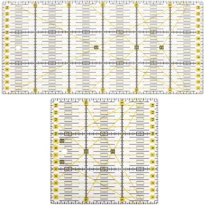 QUALITÉ SUPÉRIEURE - Le matériau acrylique robuste de qualité supérieure est durable, un matériau de qualité, construit un produit de qualité, la qualité de notre produit est garantie d'excellents outils de patchwork de tissu FHE règle de couture acrylique Règle de courtepointe 4 pièces Règle de coupe de courtepointe en Explorez une large gamme des meilleurs régle patchwork sur AliExpress pour trouver le parfait article pour vous ! En plus des marques de qualité, vous bénéficierez de remises lors de vos achats de régle patchwork durant nos super promotions Spécification: Matériau : dimensions : env., 15,24 x 15,24 cm. Les emporte-pièces incurvés permettent de réaliser des coupes parfaites sur du carton, du scrapbooking, du tissu, etc. Indispensables pour des découpes précises et régulières, les règles de patchwork sont conçues pour faciliter la coupe de tissus en couture créative. Graduées en centimètres ou en pouces (ou les deux), elles permettent de tracer et couper facilement des angles, des bandes, des carrés ou des triangles, tout en assurant un alignement... Matériau acrylique transparent - La règle de tailleur de vêtements professionnels en plastique en matériau acrylique est utilisée pour couper le tissu et le papier proprement sans s'effilocher, conçue pour les cutters et les cutters circulaires illustrer: Cette règle de quilting incurvée a des échelles claires et est très pratique à utiliser. Acrylique Règle De Couture Acrylique Avec Échelle 26x8 Cm - Lignes De Quadrillage Bicolores Couture Règle Couture
