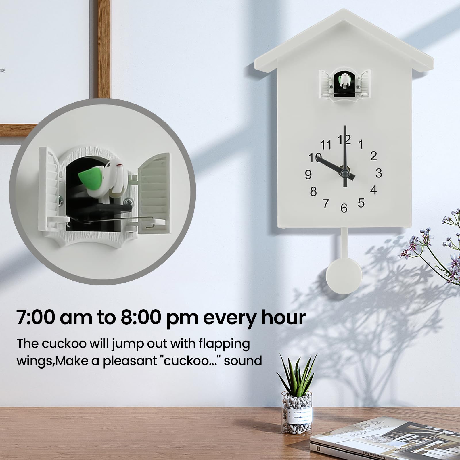Il ajoute une touche de classe aux bureaux, chambres, salons, cuisines, et plus encore. Il suffit d'ouvrir le couvercle sur le fond, d'insérer la batterie, et le pendule commencera à se balancer. Réglez le volume et le nombre de gazouillis selon vos préférences, vous permettant de profiter des sons délicieux sans déranger votre repos. Design moderne : adoptez une version contemporaine minimaliste de l'horloge à coucou traditionnelle avec notre art mural élégant et charmant. * Dimensions : environ 25 x 20 x 15 x 9 cm. Design contemporain] : cette version minimaliste et moderne de l'horloge à coucou traditionnelle présente des formes simples et des motifs adorables. Il s'intègre parfaitement dans n'importe quel style d'intérieur, améliorant votre salon, bureau ou chambre avec une esthétique contemporaine Décoration Forêt Noire Horloge à Coucou Murale Moderne - Fonction Nuit Silencieuse - Pendule - Gris - Alimentation Piles Horloge Coucou Avec Pendule Avec des formes simples et des motifs mignons, cette horloge ajoute une touche d'élégance moderne à n'importe quelle décoration d'intérieur, parfaite pour les études, les bureaux, les chambres, les salons et les cuisines. [Options de couleur polyvalentes] : choisissez parmi une gamme de couleurs élégantes pour correspondre à votre intérieur : blanc, vert, bleu, blanc + gris, ou blanc + orange. Installation et utilisation faciles : il suffit de placer l'horloge sur une étagère ou une cheminée pour une amélioration instantanée de la décoration. Contenu de l'emballage : 1 horloge. Coucou Horloge Horloge Murale De 22,9 Cm Sans Tic-tac, Silencieuse, Fonctionne U00e0 Piles, Style Moderne Et Simple Avec Cadre En ABS Et Verre HD Pour Enfants, Salon, Chambre U00e0 Coucher, Cuisine, U00e9cole Avec des formes simples et des motifs mignons, cette horloge ajoute une touche d'élégance moderne à n'importe quelle décoration d'intérieur, parfaite pour les études, les bureaux, les chambres, les salons et les cuisines Fonctionne avec 3 piles AA (non fournies). * Facile à utiliser : placez l'horloge à coucou sur une étagère ou une cheminée. * Couleur : blanc, vert, bleu, blanc + gris, blanc + orange. Chaque détail est fabriqué avec précision et attention aux détails. Caractéristiques : * Nom de la pièce : horloge à coucou., *Matériau : ABS. Ouvrez le couvercle inférieur, insérez les piles et regardez le pendule commencer à se balancer sans effort.
